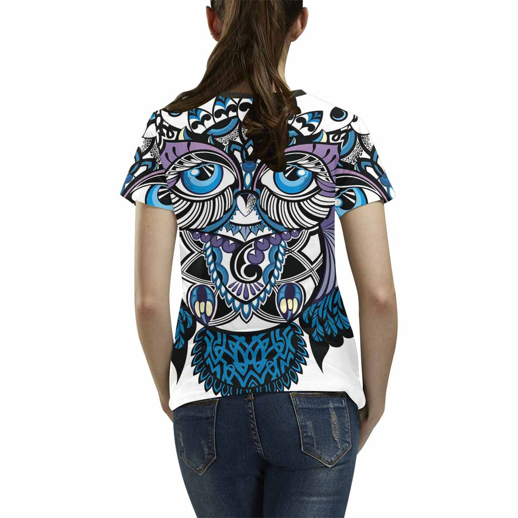 Womens tops t-shirts print with colorful owls