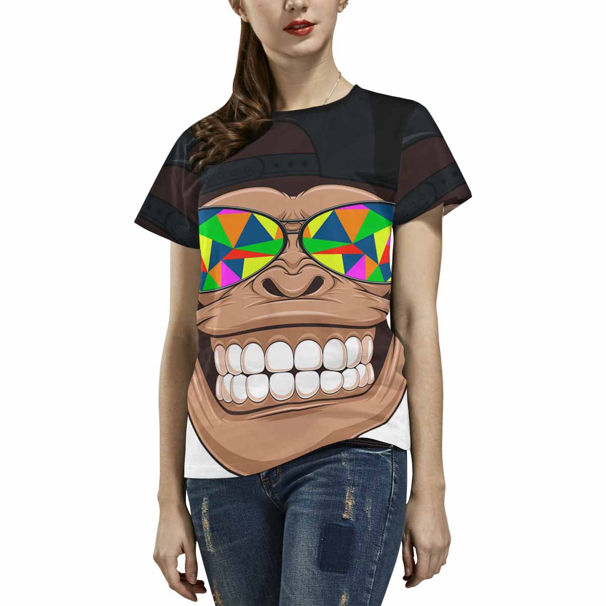 Womens tops t-shirts print with Funny monkey