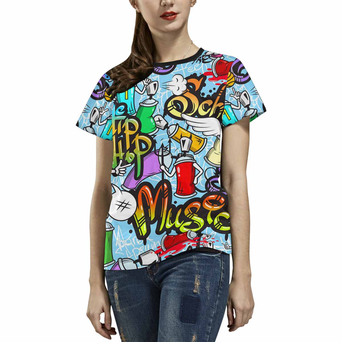 Womens tops t-shirts print with Graffiti characters