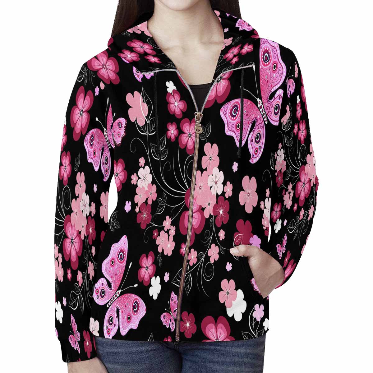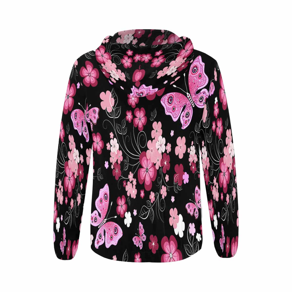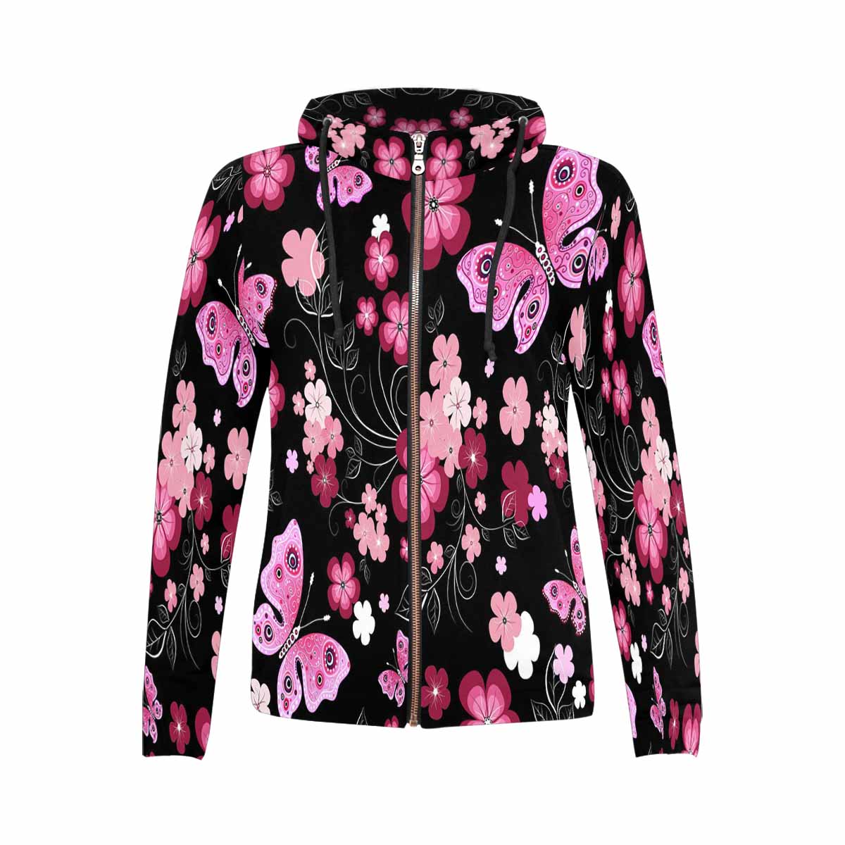 Women's Full Zip Hoodies print with dark pink Butterfly flowers pattern