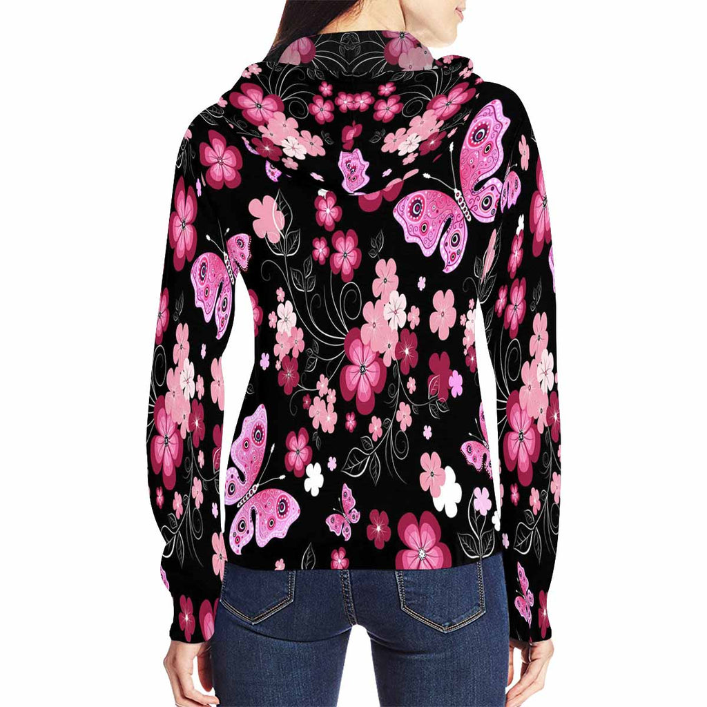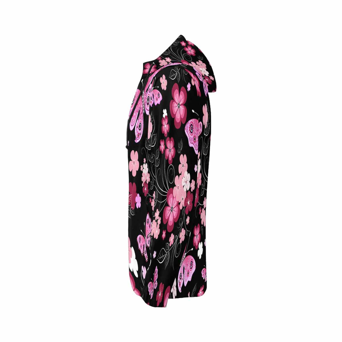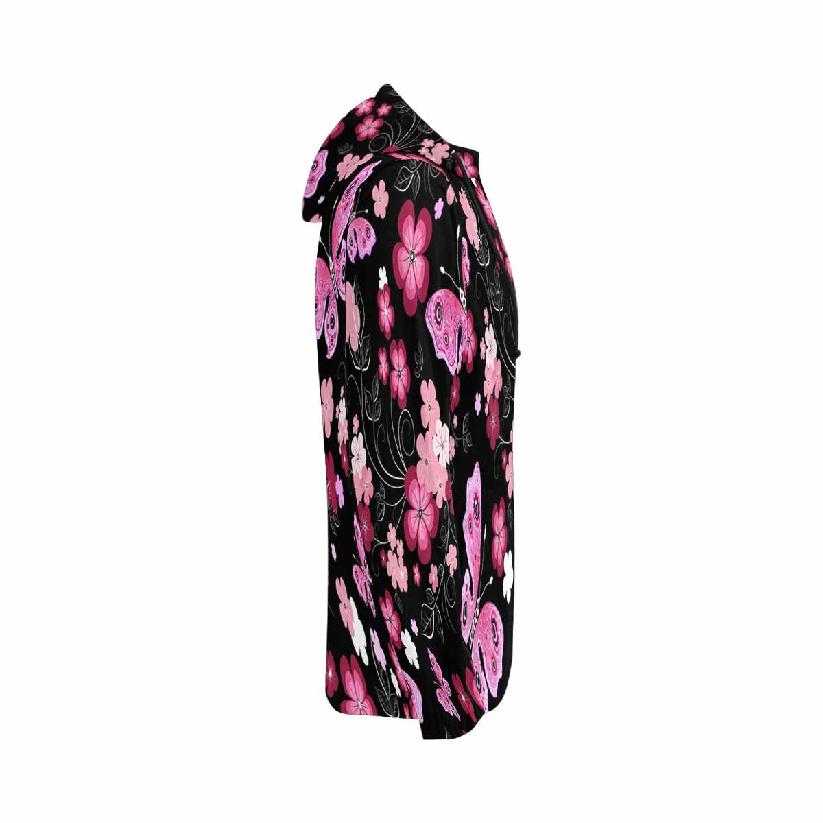 Women's Full Zip Hoodies print with dark pink Butterfly flowers pattern