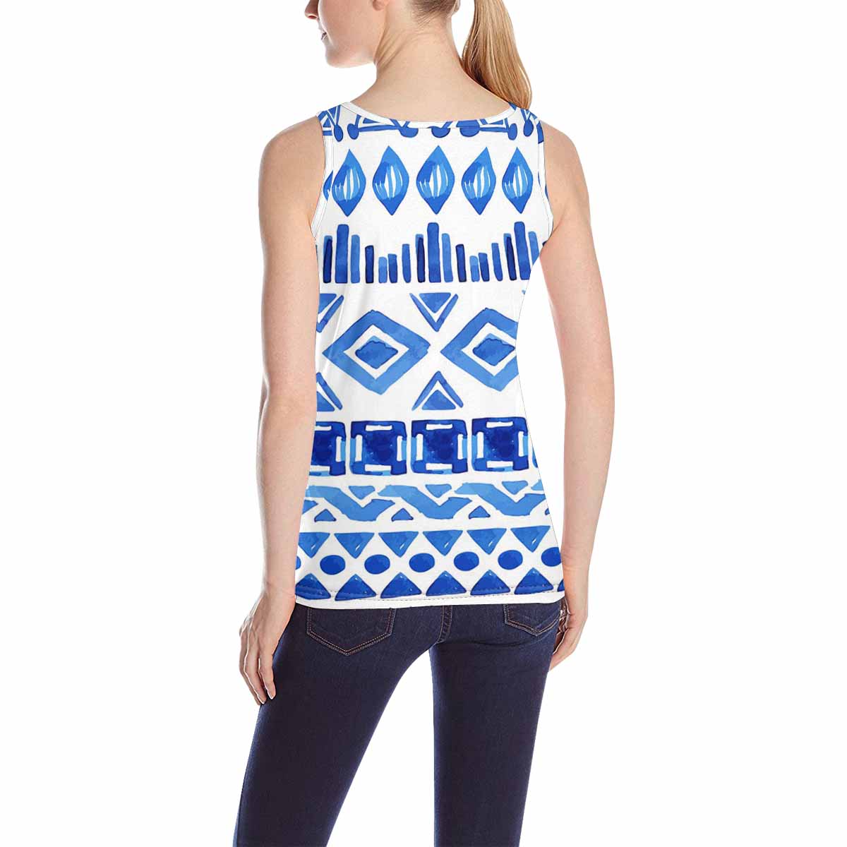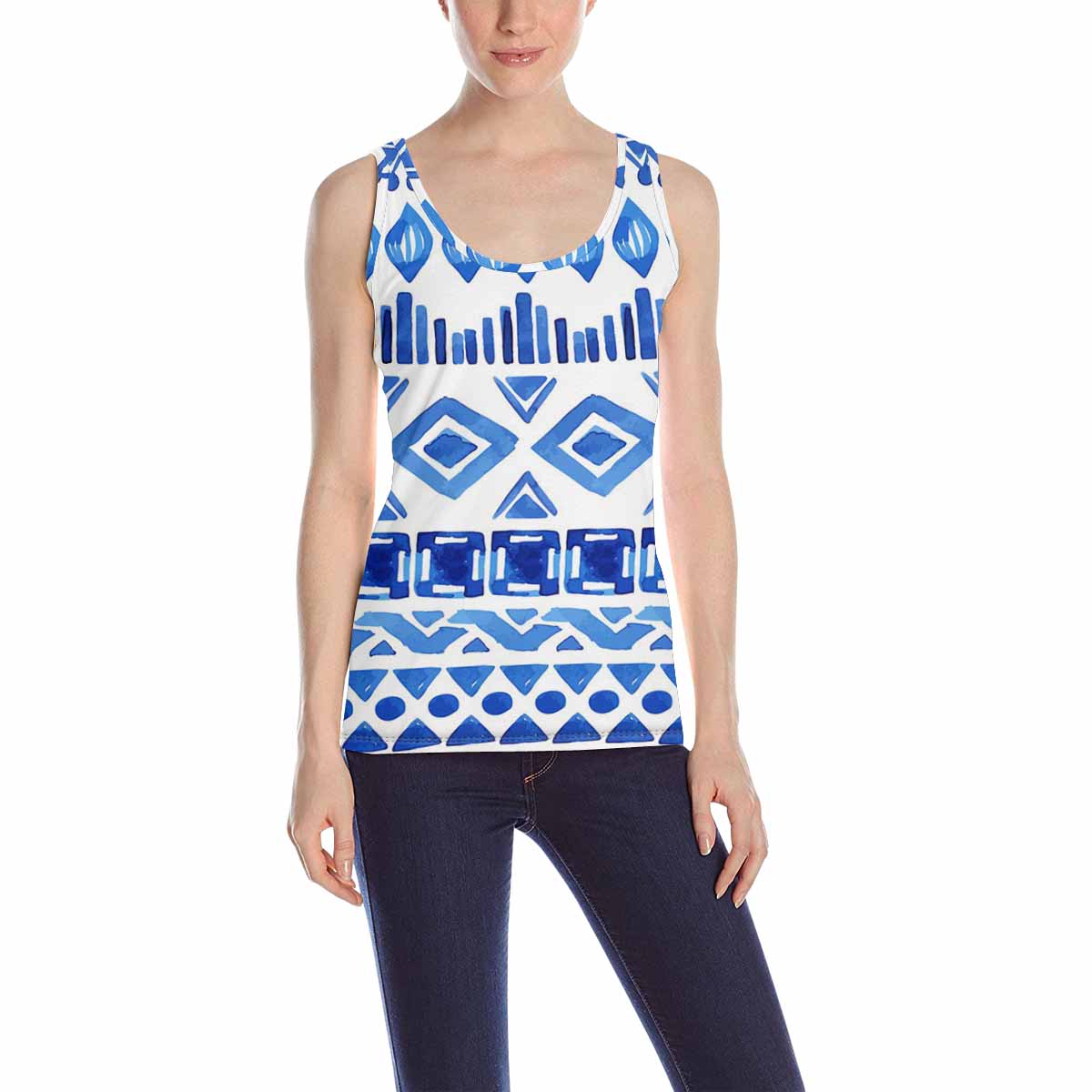 Women's Tank Top print with blue aztec pattern