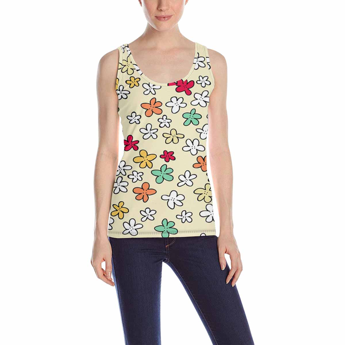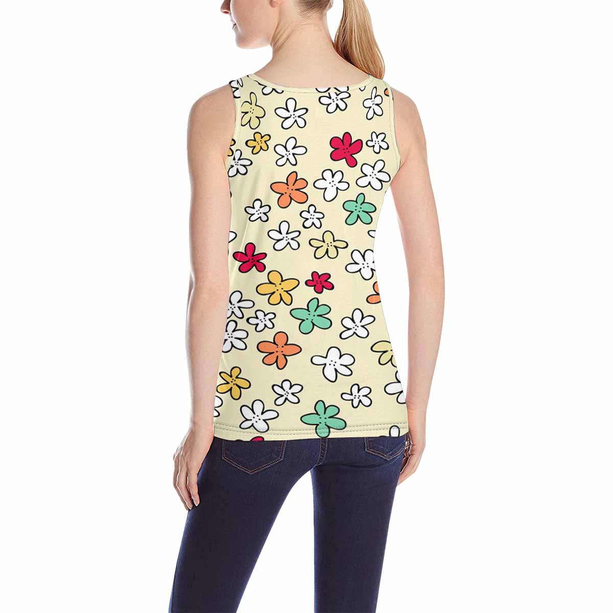 Women's Tank Top print with colorful flowers doodle pattern