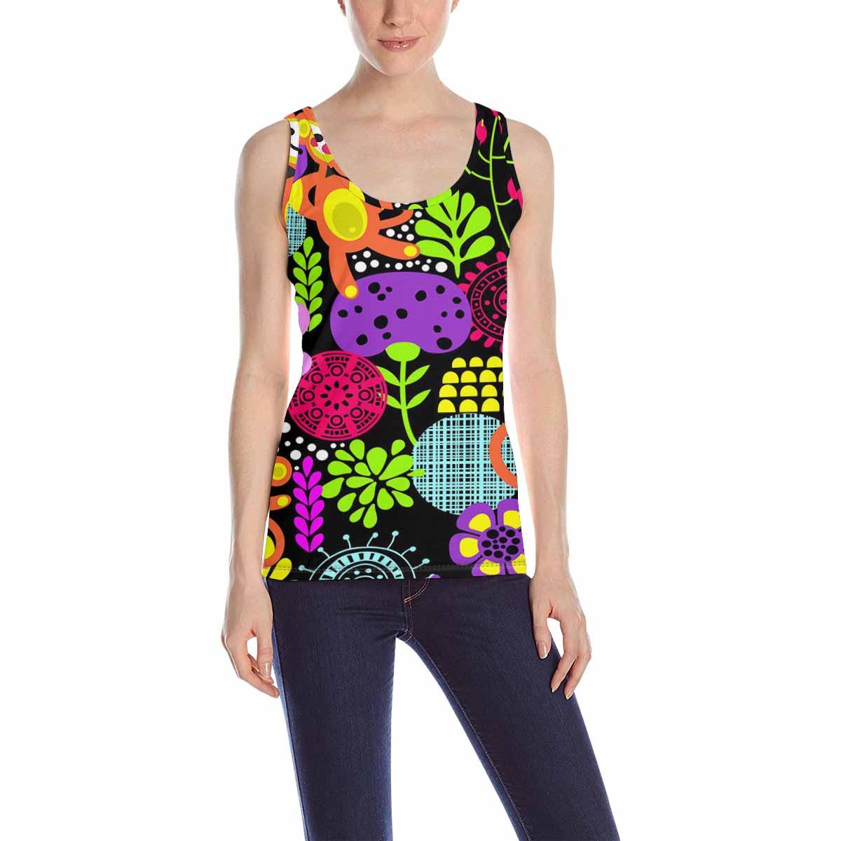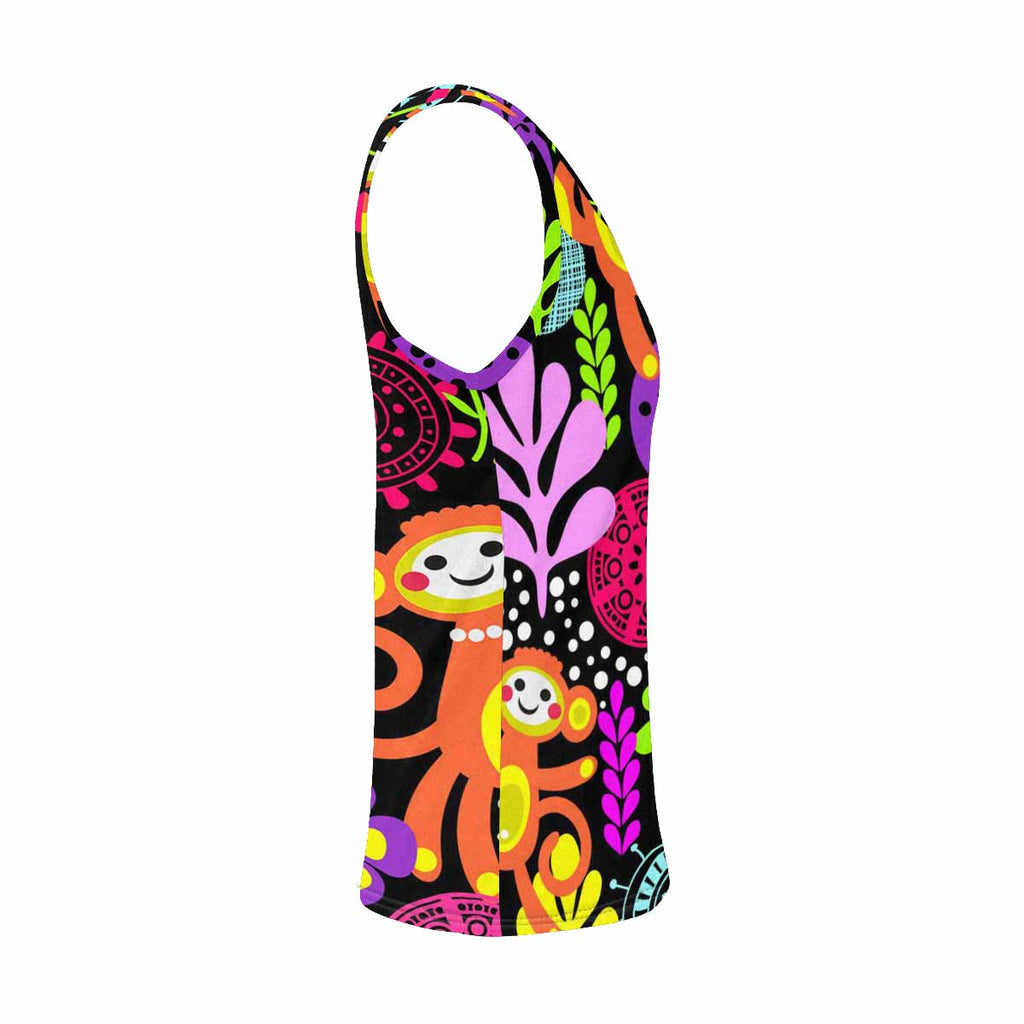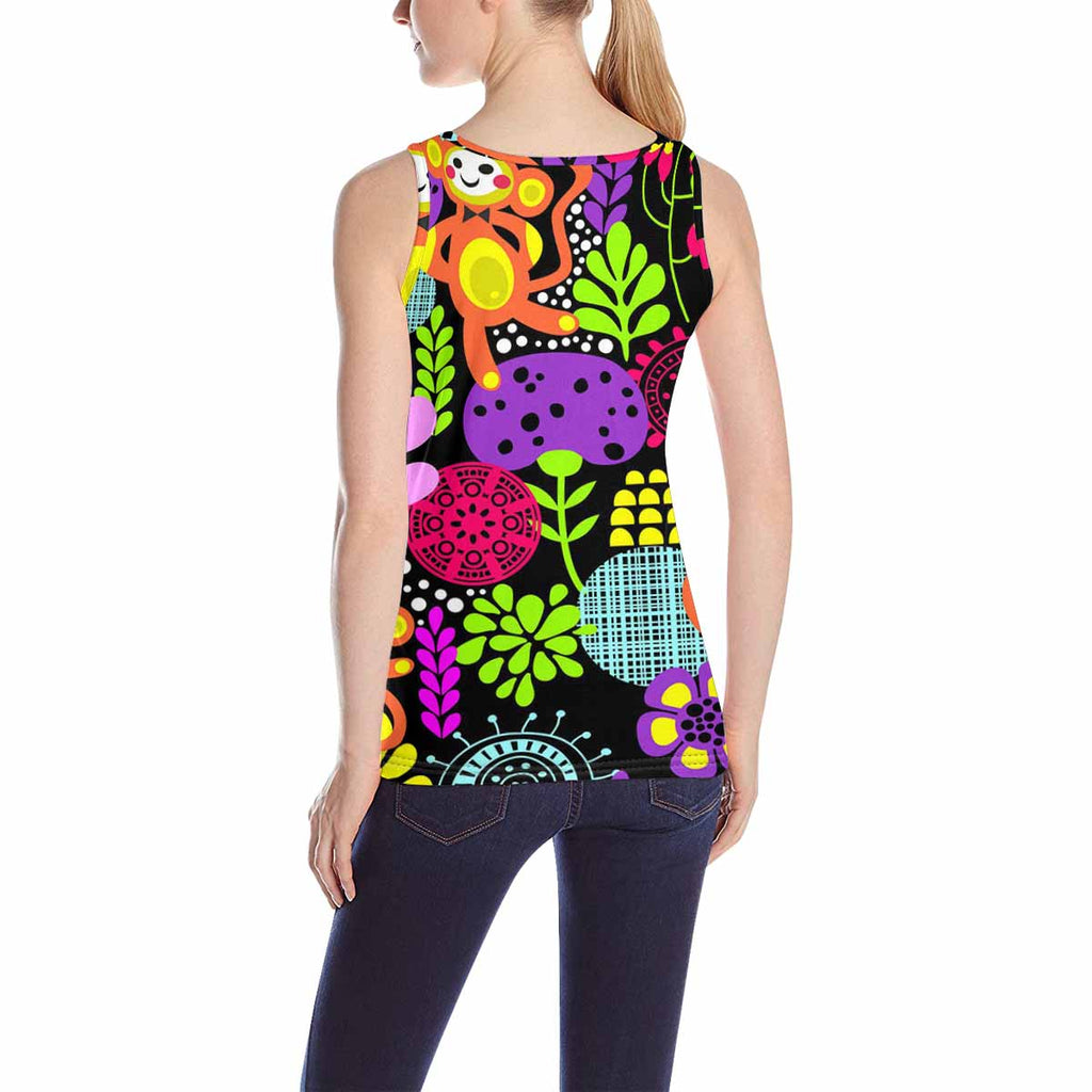 Womens Tank Tops print with bright flowers monkeys