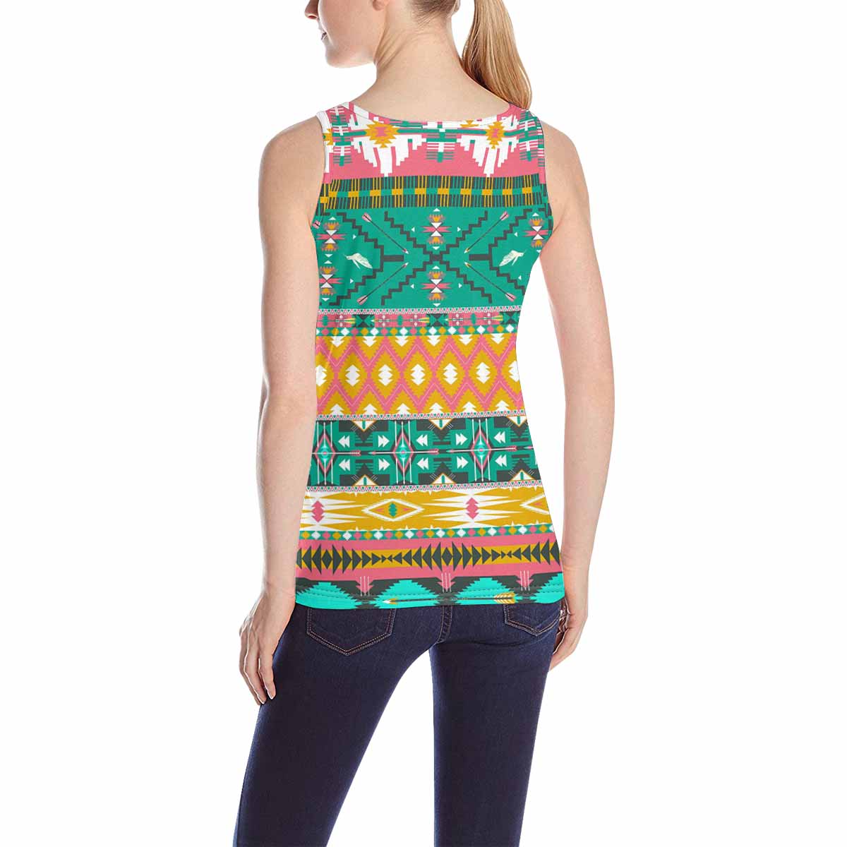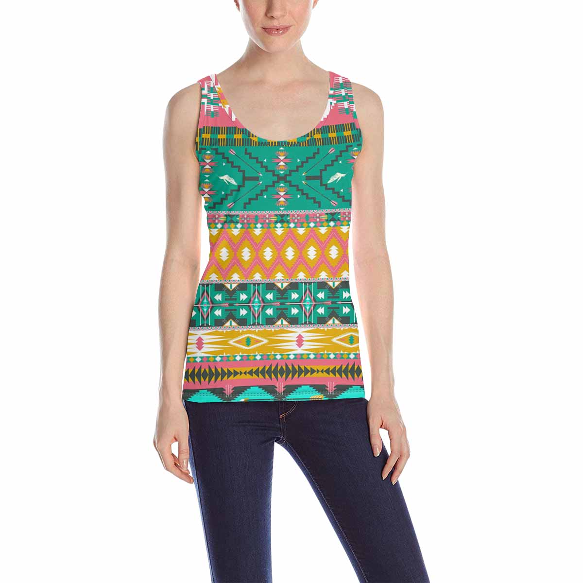 Womens Tank Tops print with colorful aztec pattern with birds