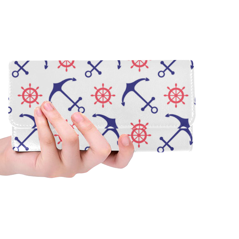 ladies trifold wallet retro flowers cute anchor pattern print on women designer wallets 3