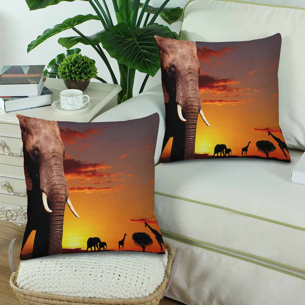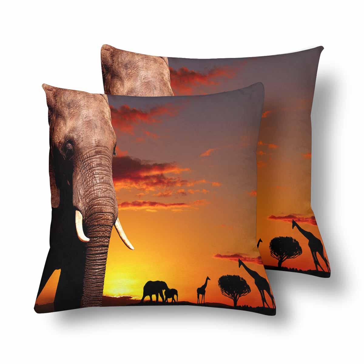 Animals themed Pillow Cases printed with African elephant in savanna at sunset