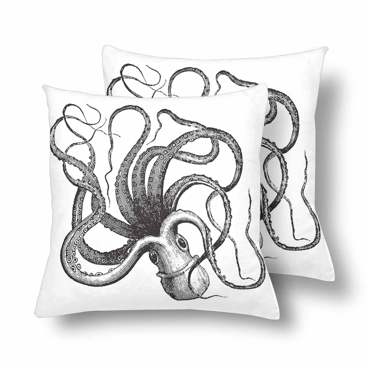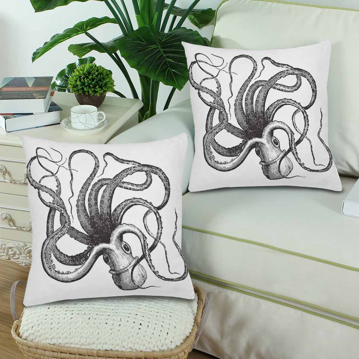 Animals themed Pillow Cases printed with octopus isolated on white, vintage engraved illustration