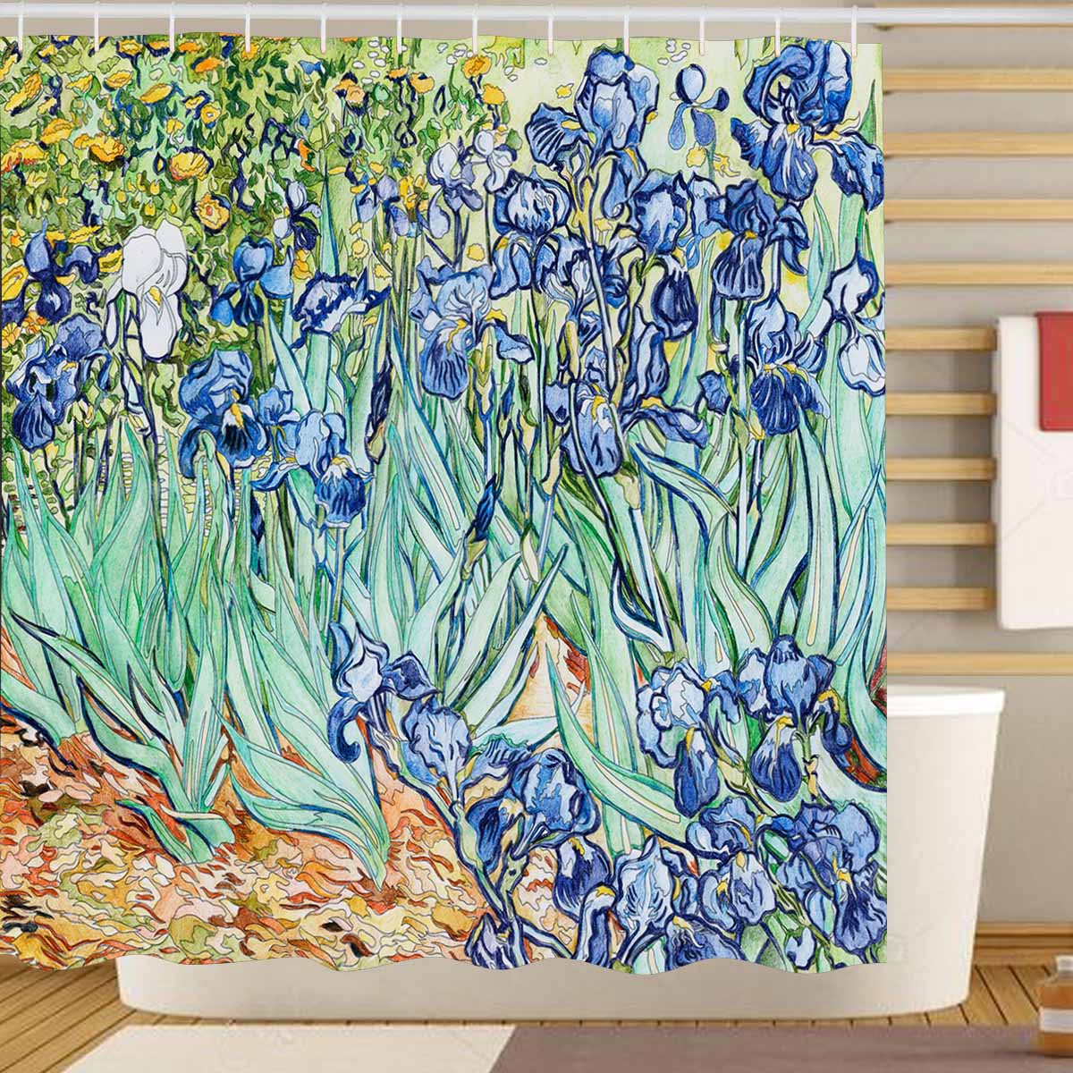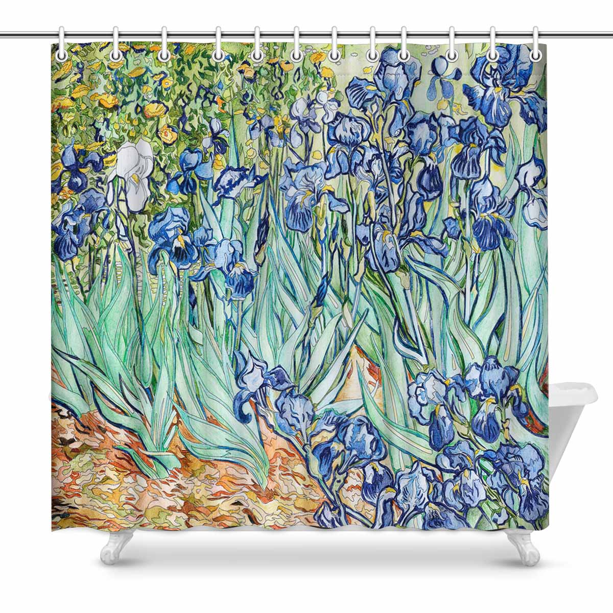 Arts themed shower curtains print with Irises (1889) by Vincent van Gogh adult coloring page