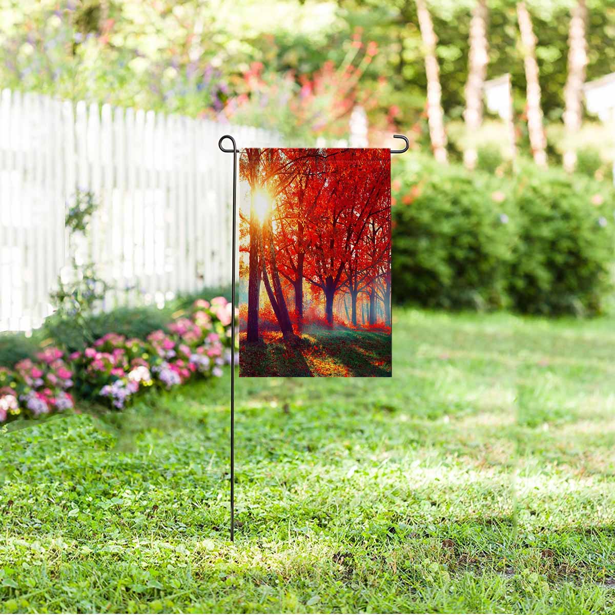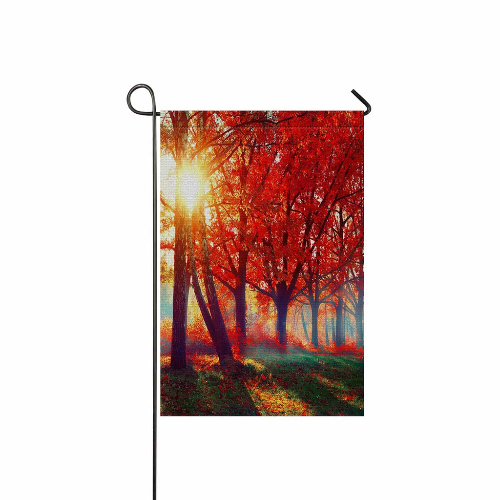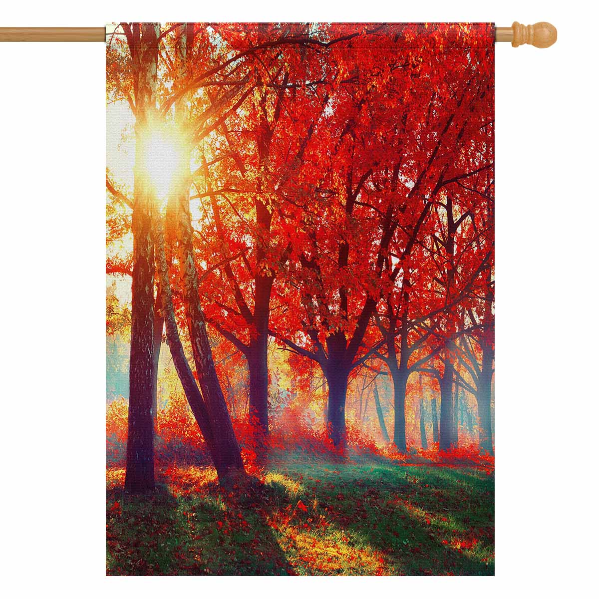 Garden Flags printed tree and moutains themed with Autumn Fall Forest nature scene