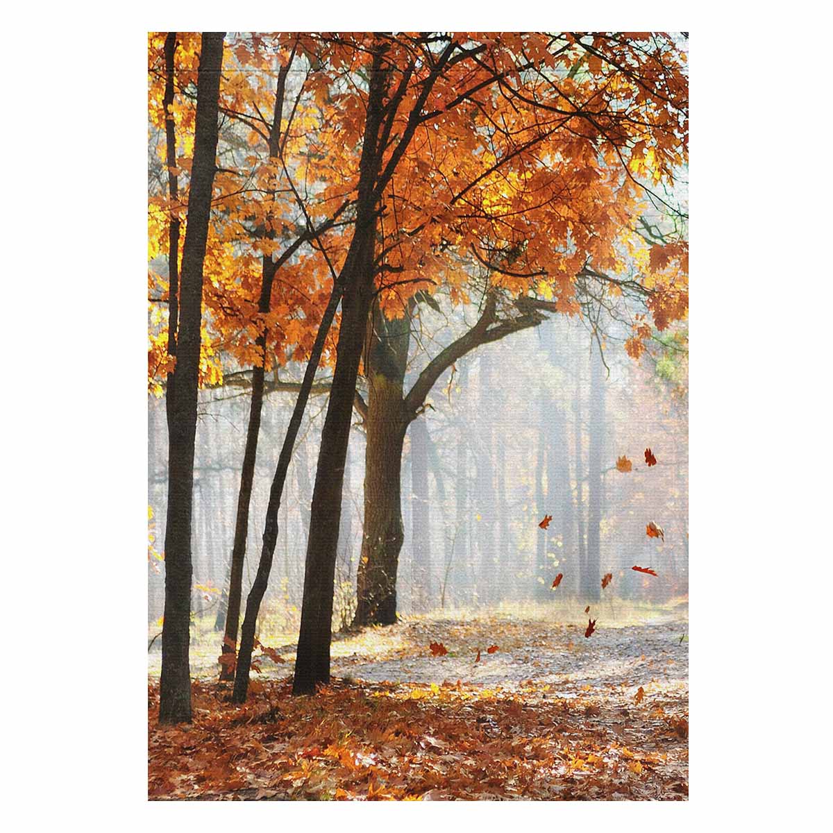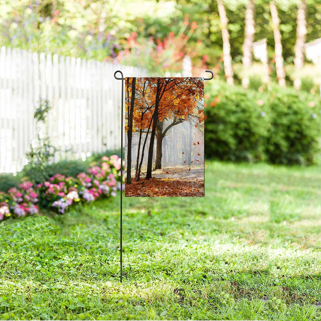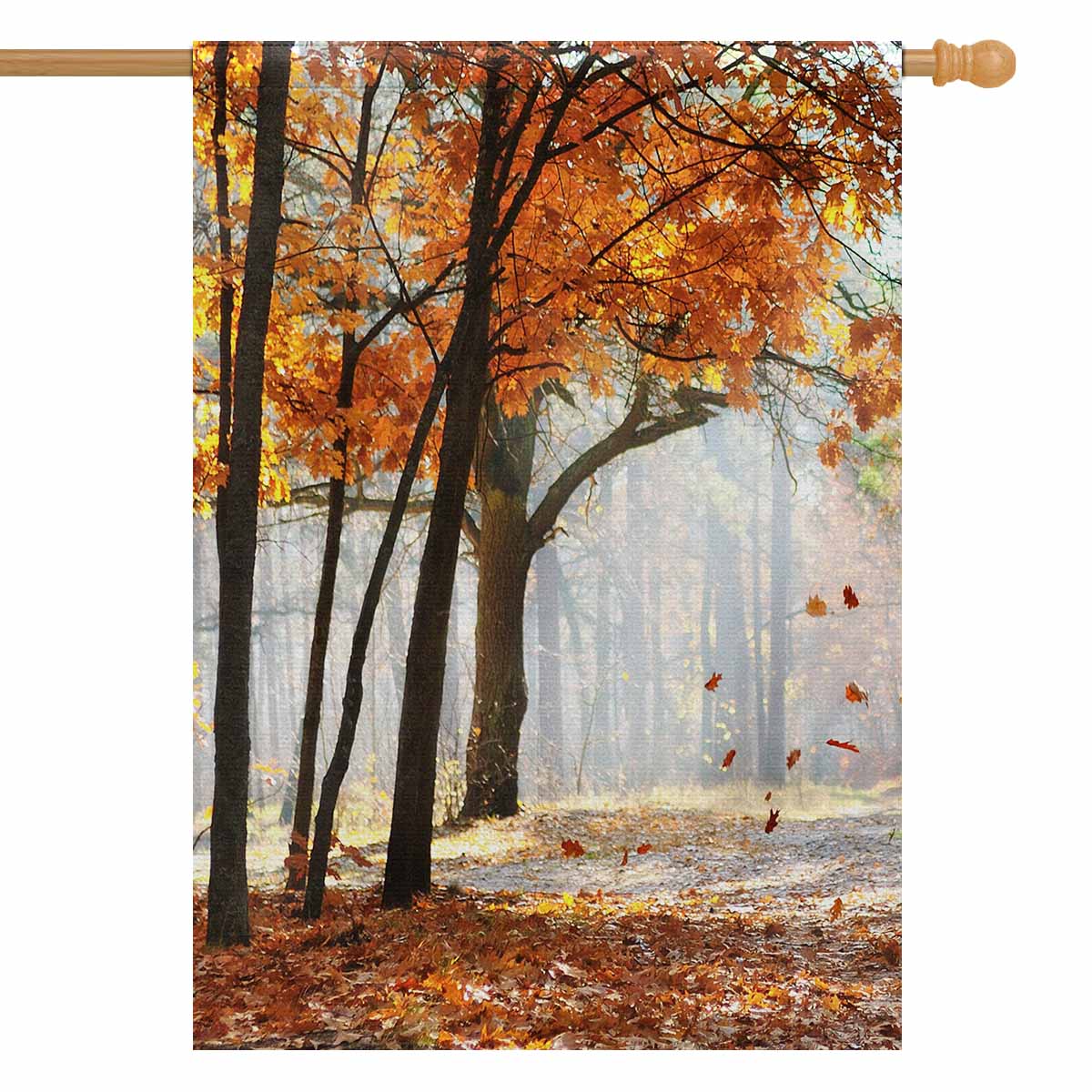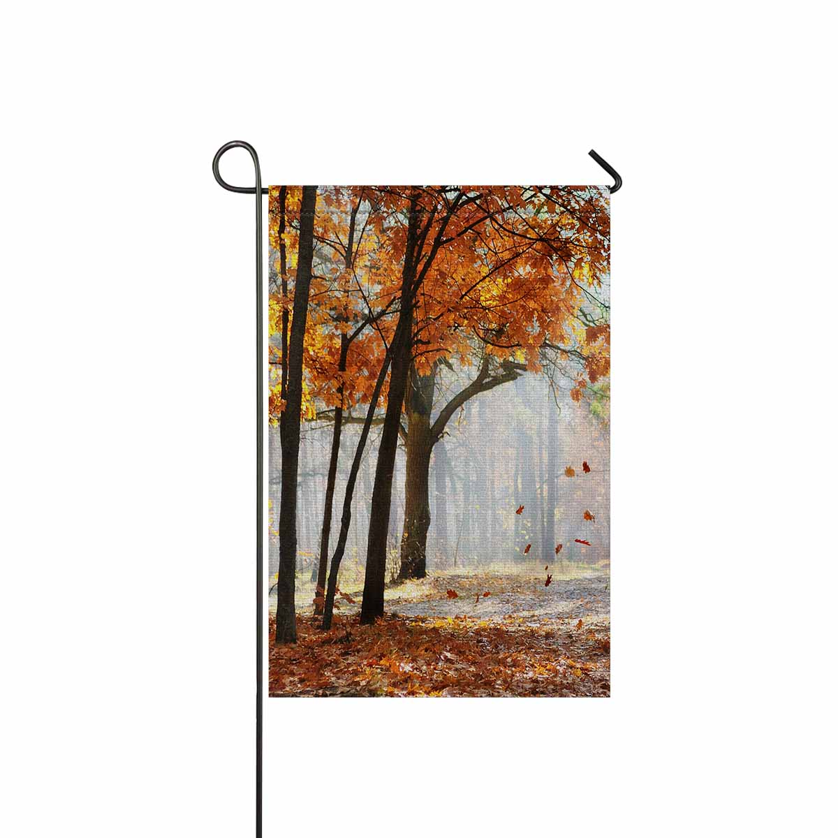 Garden Flags printed tree and moutains themed with Falling oak leaves on the scenic autumn forest