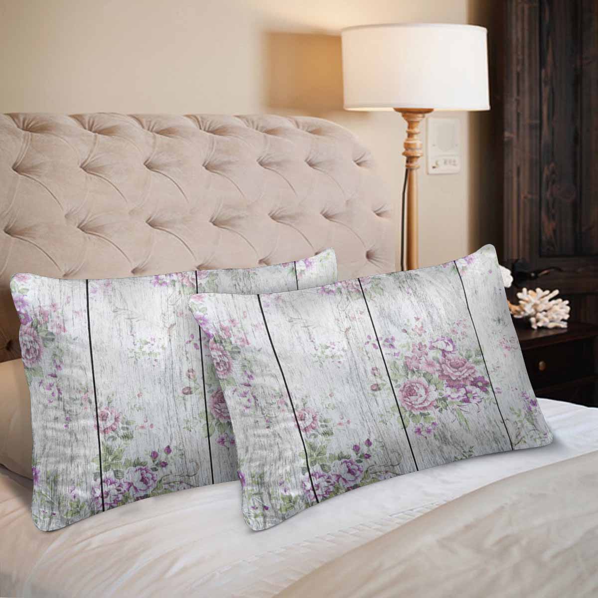 Rustic themed Rectangle Pillow Cases printed vintage painting wood with flowers