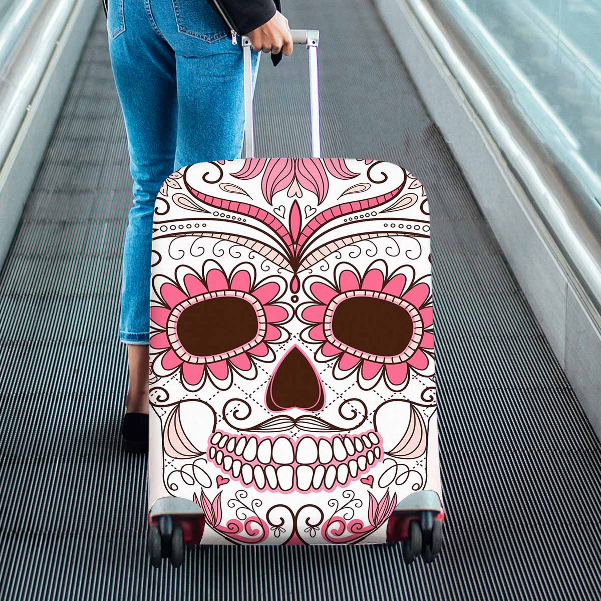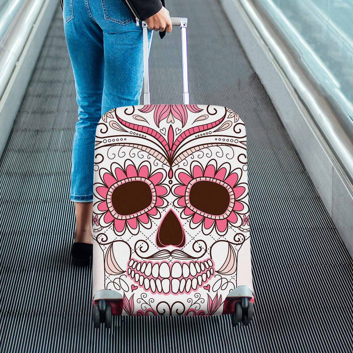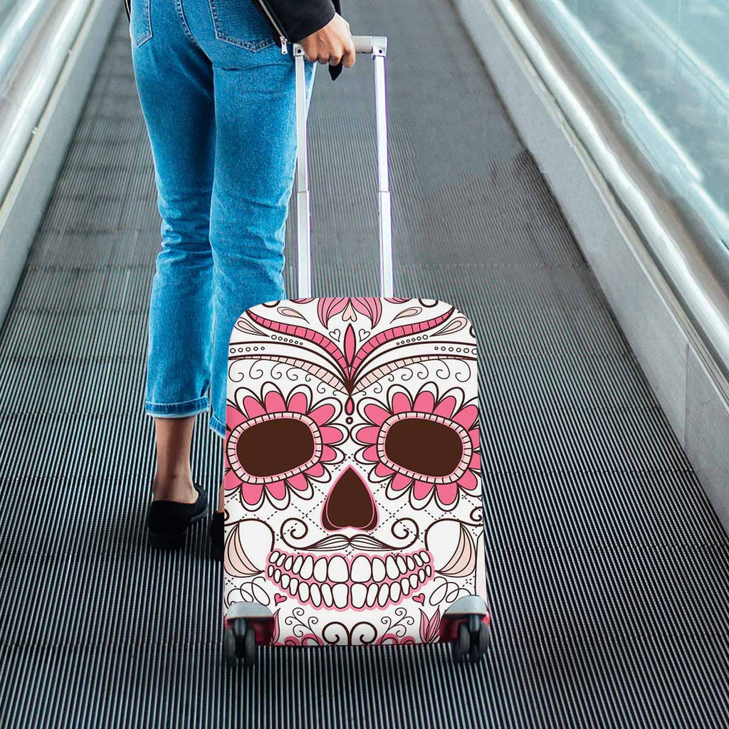 Skull themed Cover for Luggage suitcase printed colorful Skull with floral ornament