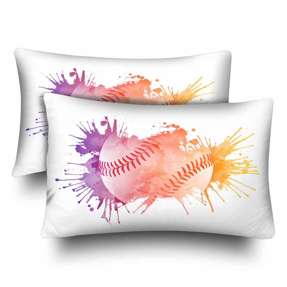 Sports themed Rectangle Pillow Cases printed Baseball ball in Watrcolor Isolated on White Background