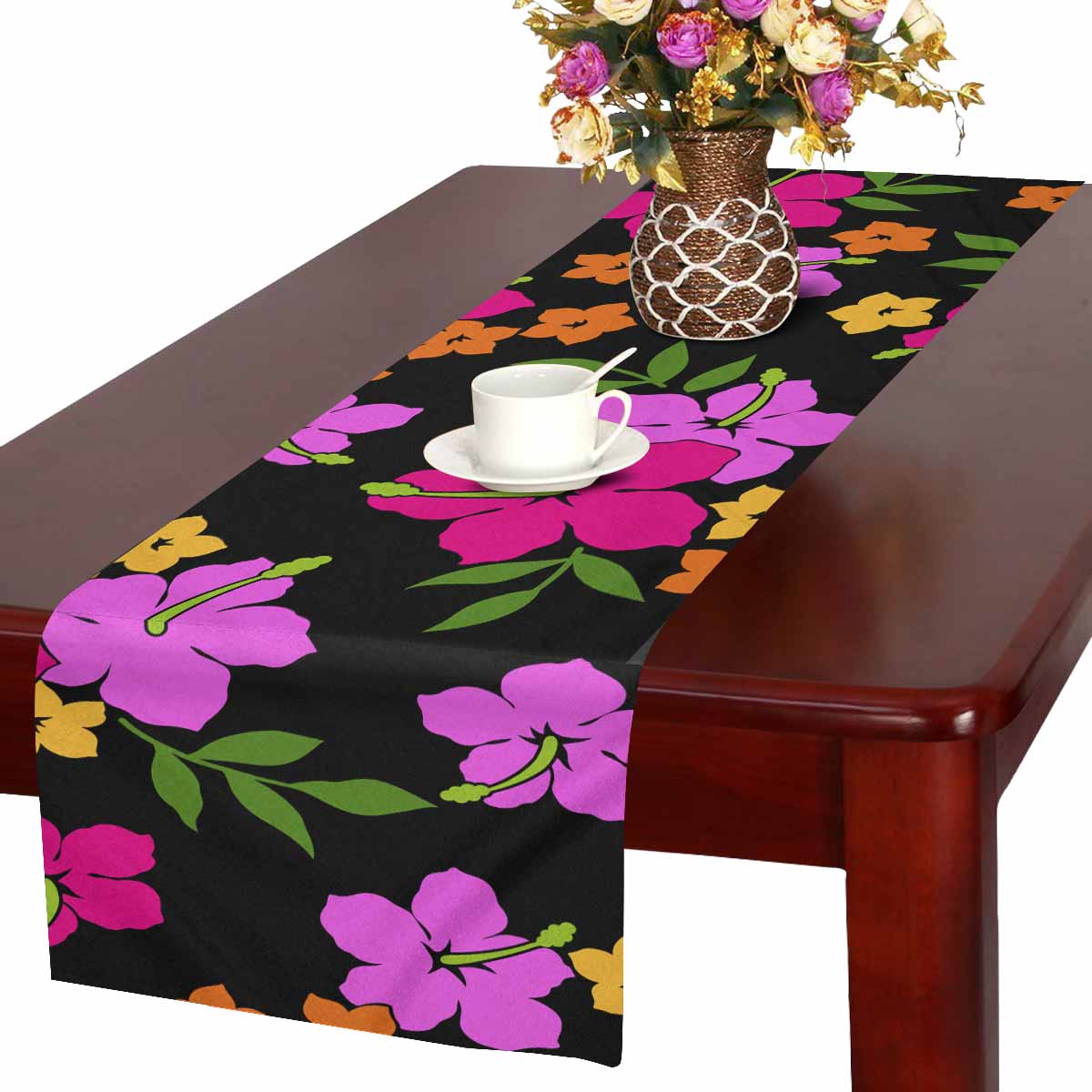 Zenzzle Table Runner 16in*72in print with bright colorful flowers pattern