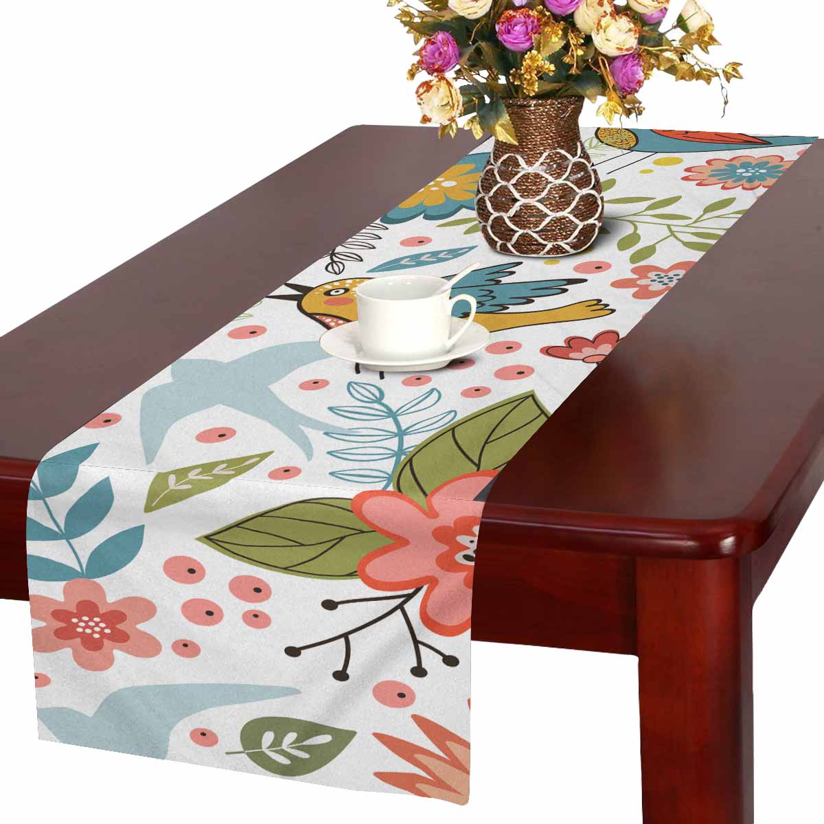 Zenzzle Table Runner 16in*72in print with Colorful blooming flowers birds pattern