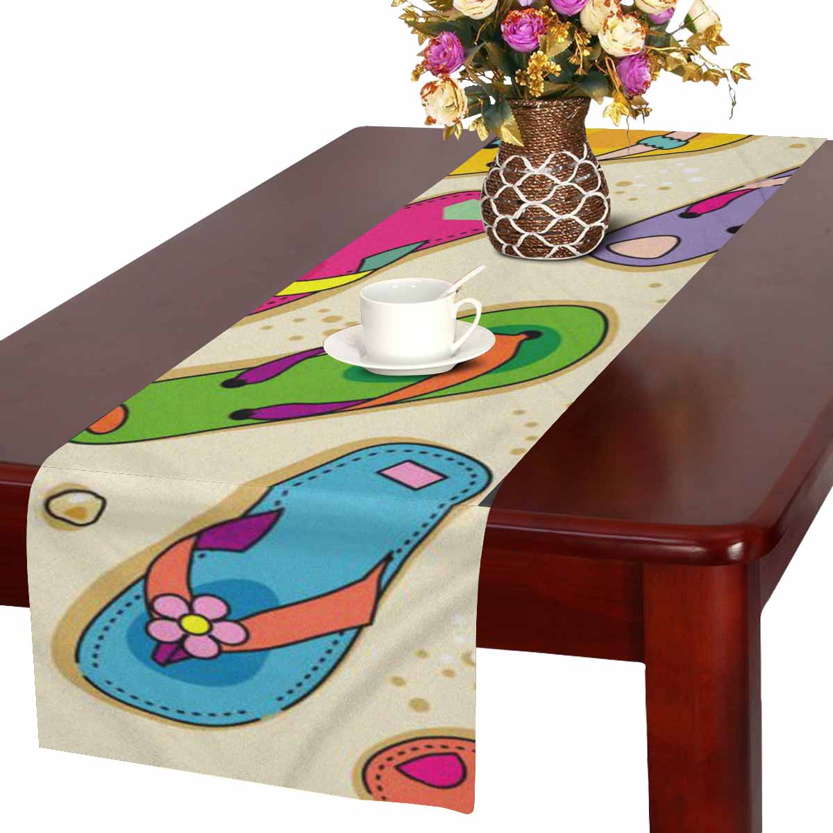 Zenzzle Table Runner 16in*72in print with colorful cute flip-flops
