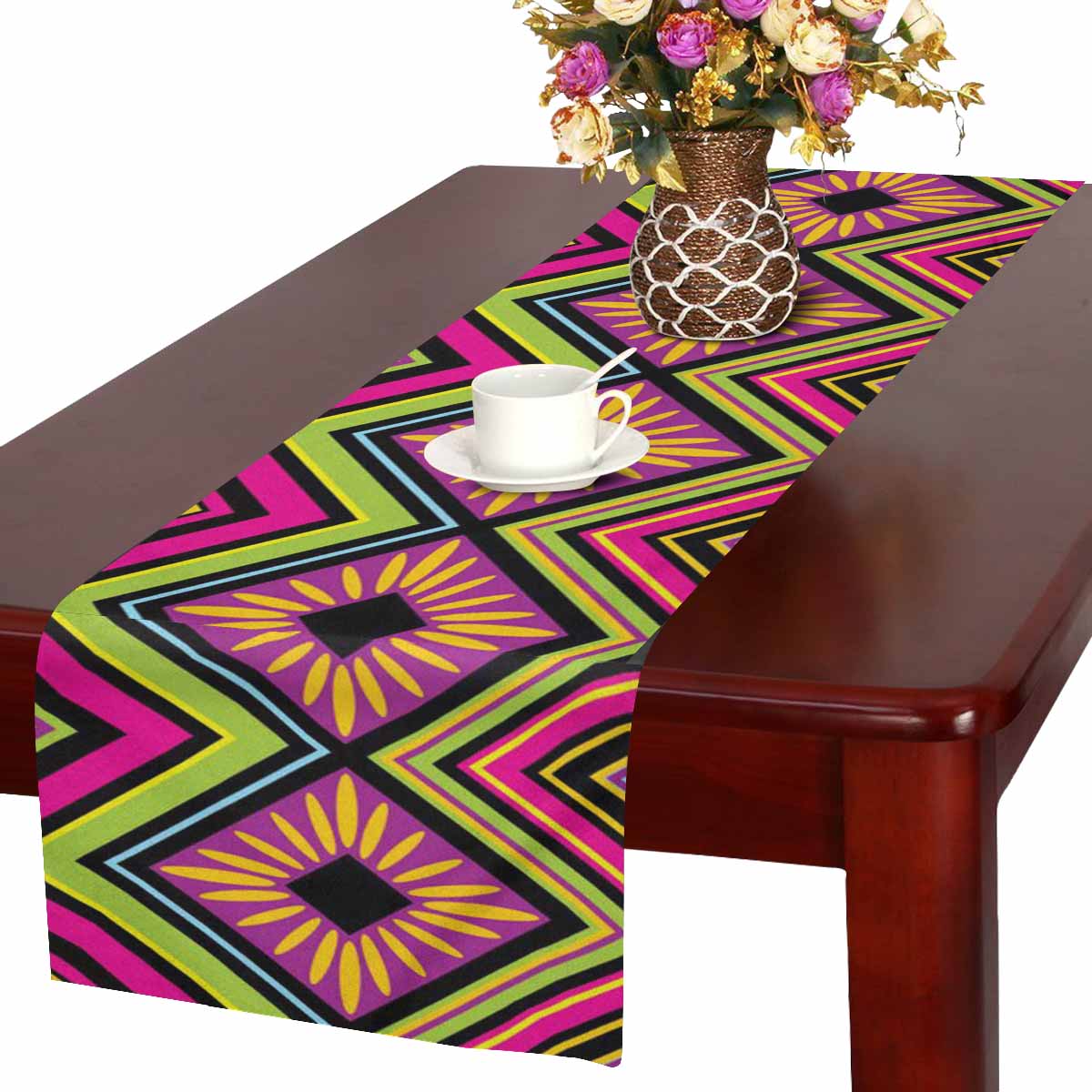 Zenzzle Table Runner 16in*72in print with colorful Mexican zigzag