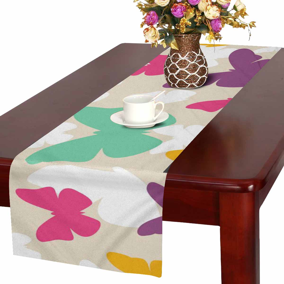 Zenzzle Table Runner 16in*72in print with colorful retro Butterfly
