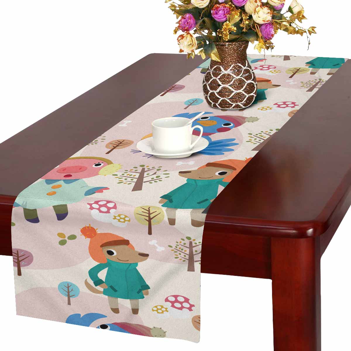 Zenzzle Table Runner 16in*72in print with cute colorful animals