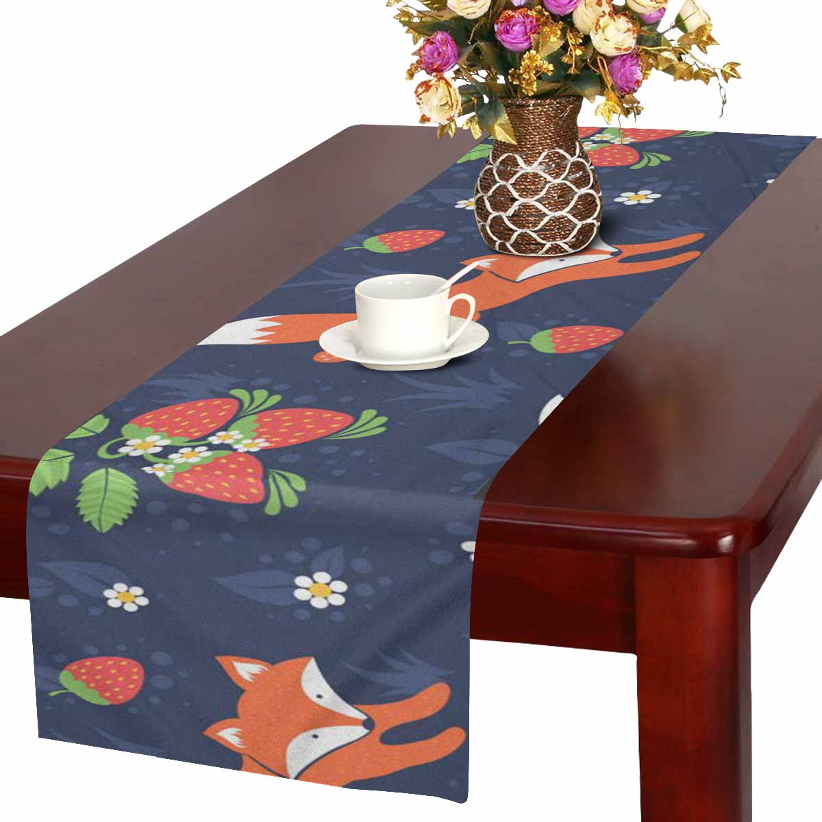 Zenzzle Table Runner 16in*72in print with cute Foxes and wild strawberries pattern