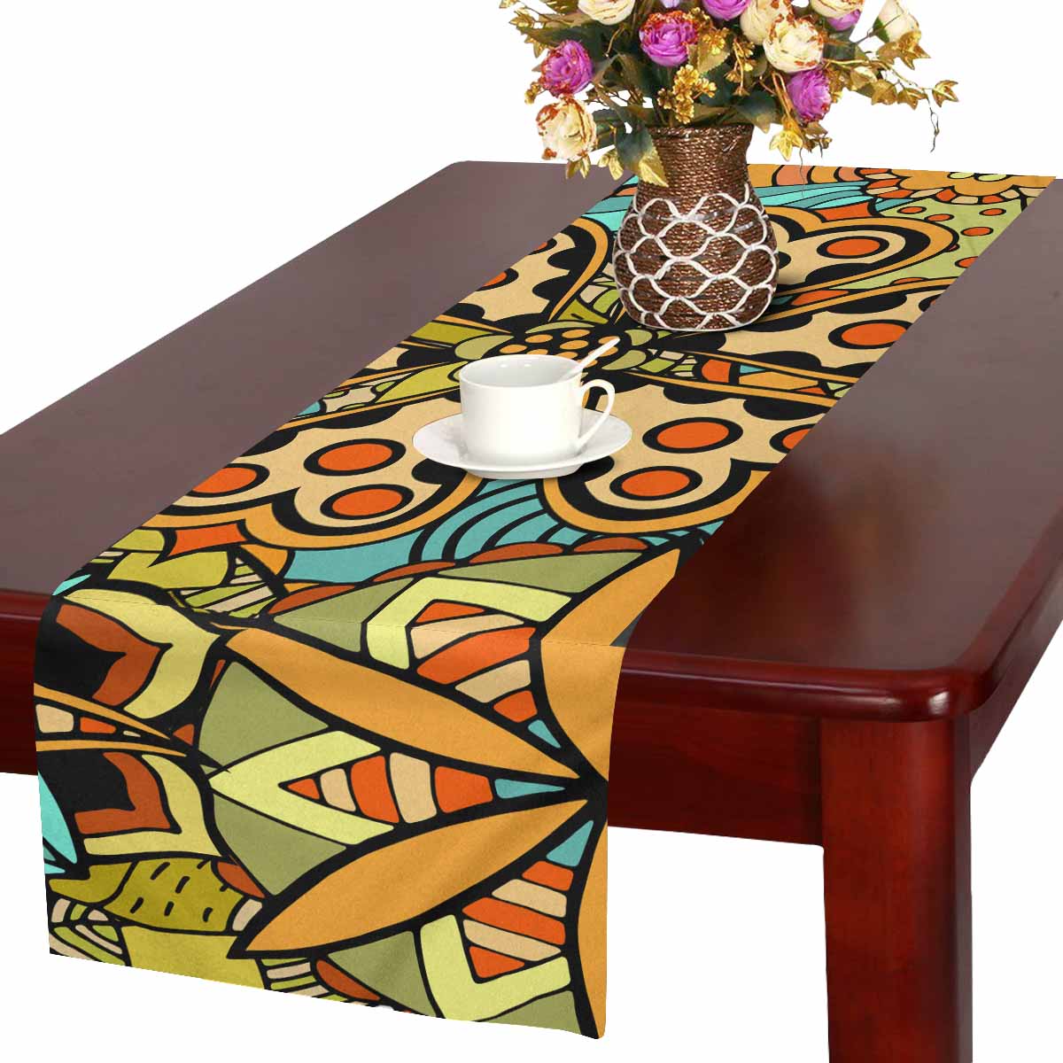 Zenzzle Table Runner 16in*72in print with Doodle flowers and leafs pattern