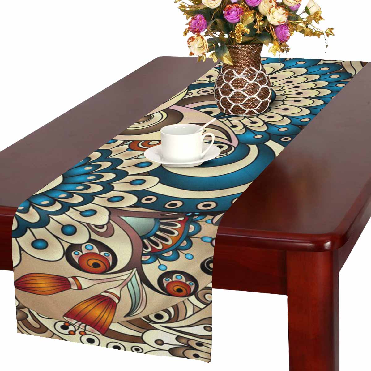 Zenzzle Table Runner 16in*72in print with floral pattern with doodles and cucumbers