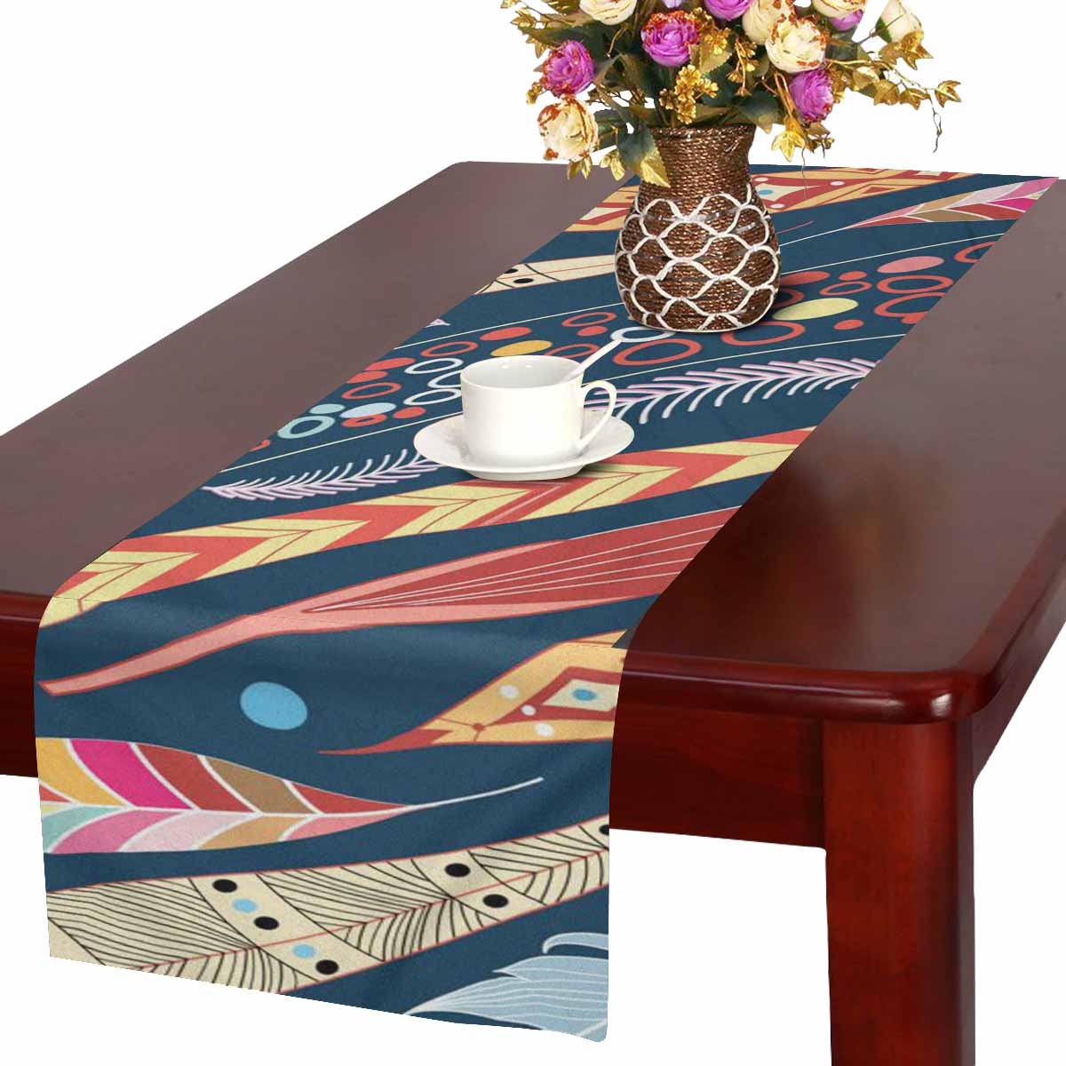Zenzzle Table Runner 16in*72in print with Leaves and feathers pattern