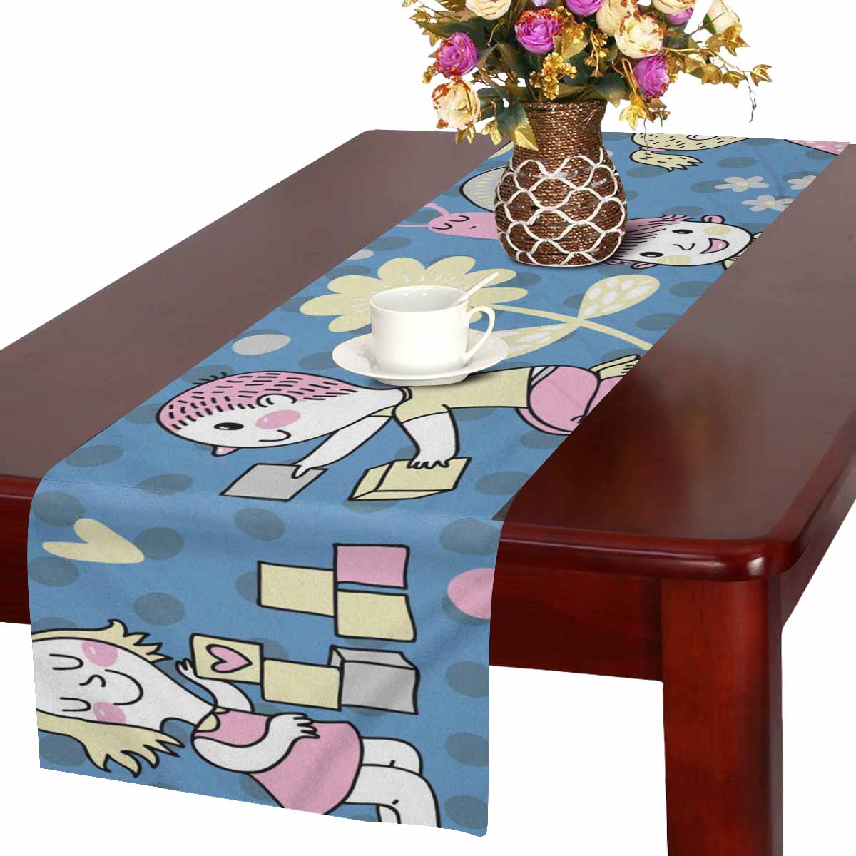 Zenzzle Table Runner 16in*72in print with Pattern with children playing with toys