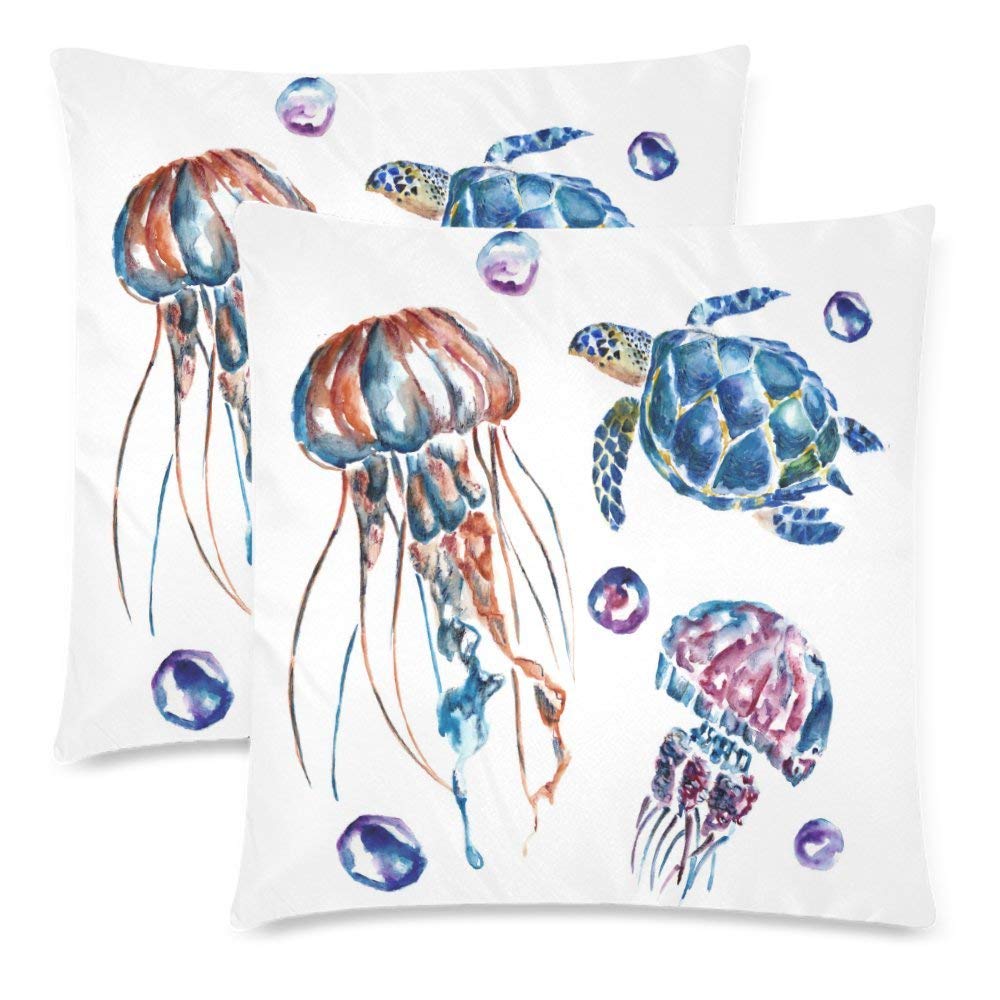 2 Pack Set with Jellyfish and Turtle Throw Cushion Pillow Case Cover 18x18 Twin Sides