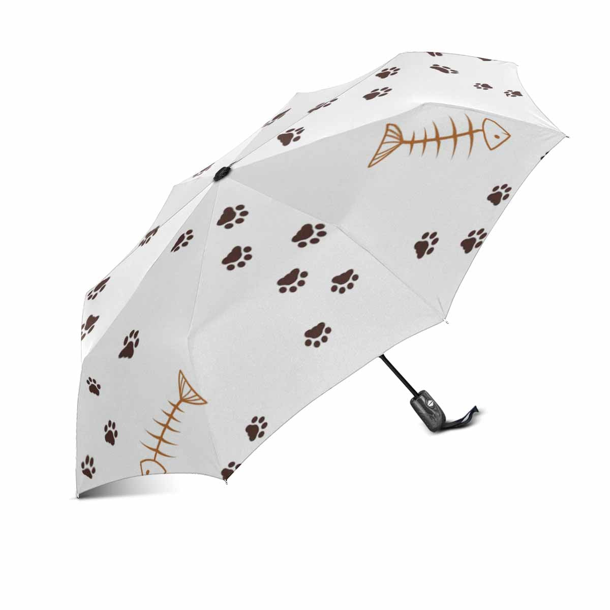 Animal footprints and fish bones pattern travel umbrella automatic windproof foldable