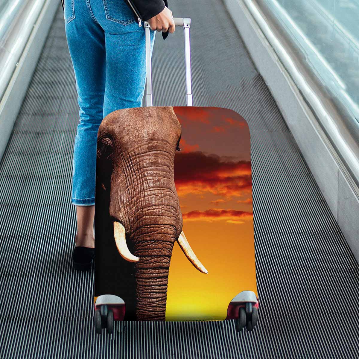 Animals themed Cover for Luggage suitcase printed African elephant in savanna at sunset