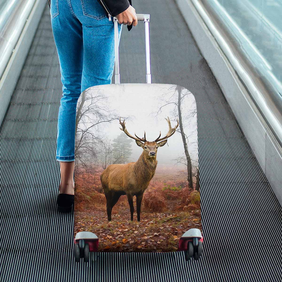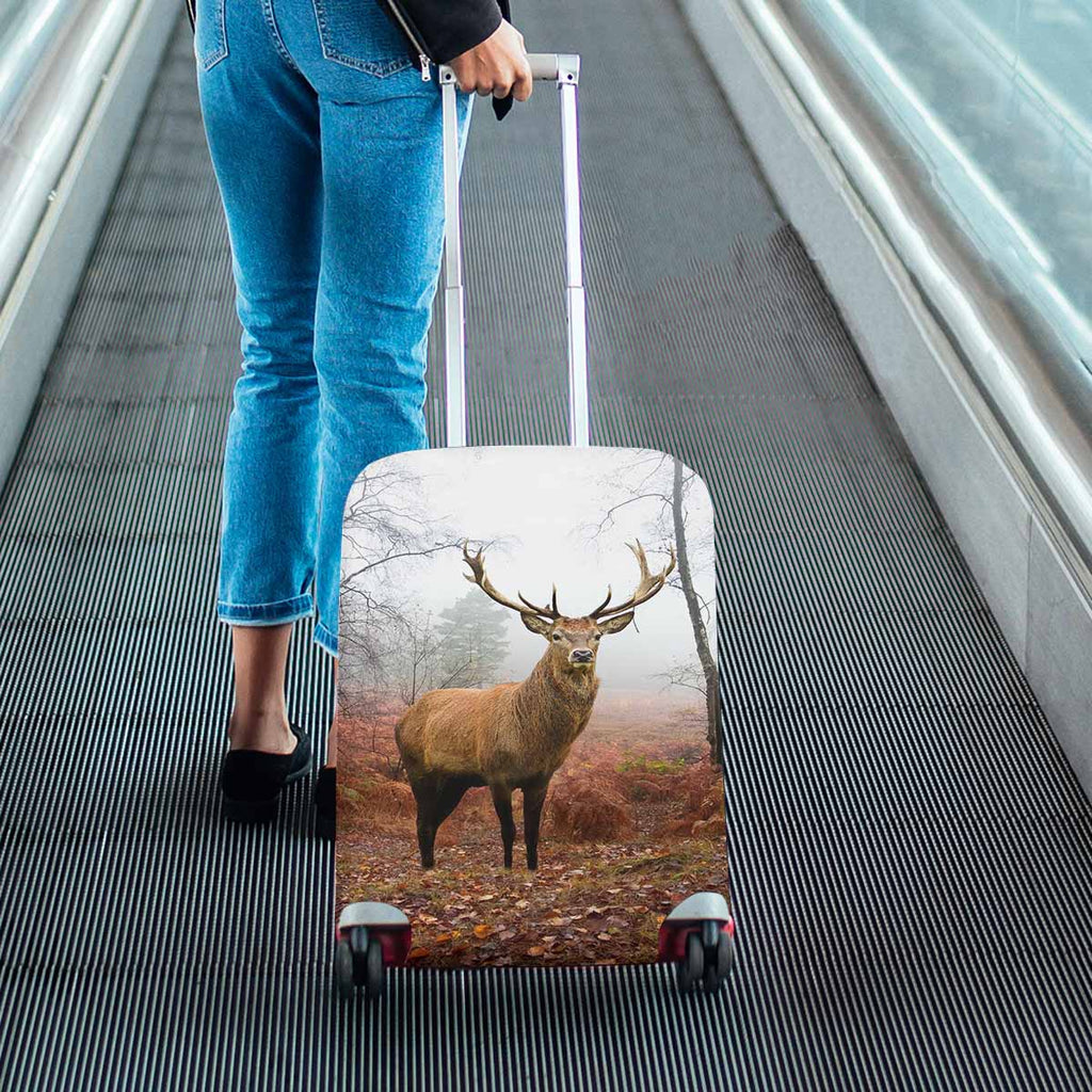 Animals themed Cover for Luggage suitcase printed Red deer stag in foggy misty Autumn forest