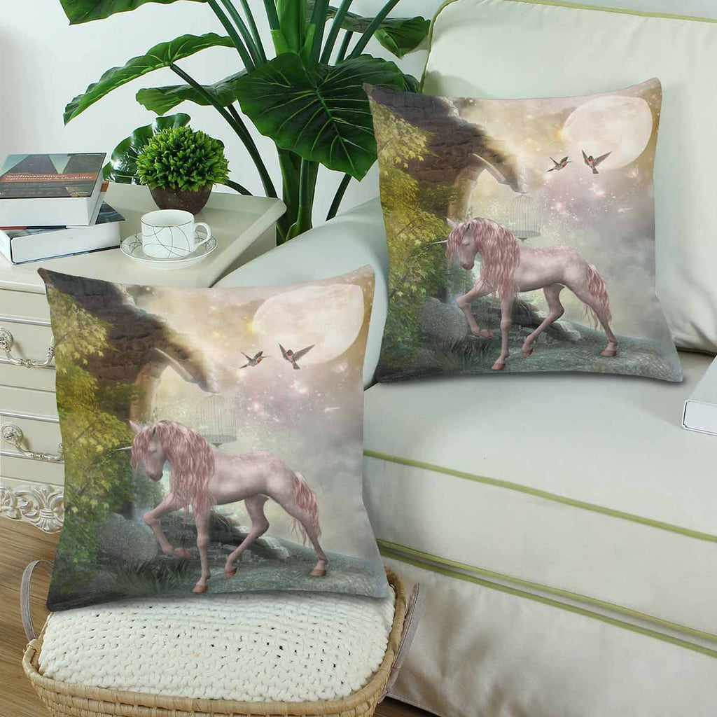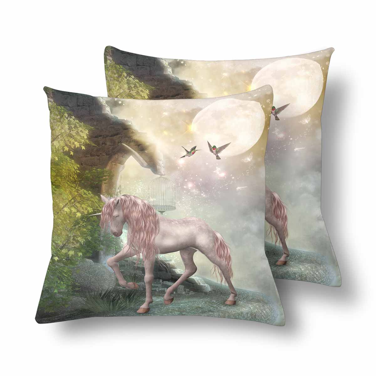 Animals themed Pillow Cases printed with fairytale unicorn on color landscape