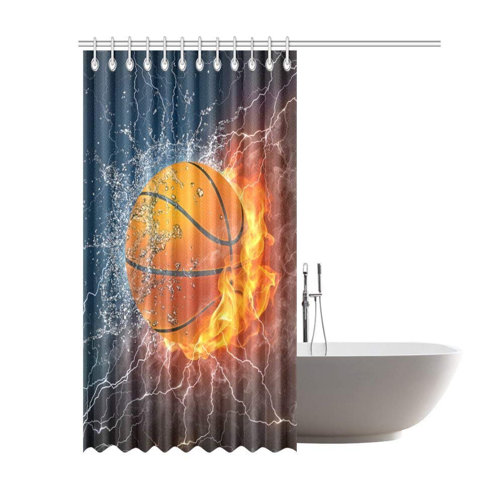 Basketball Ball on Fire and Water Flame Splashing Thunder Lightning Polyester Fabric Shower Curtain