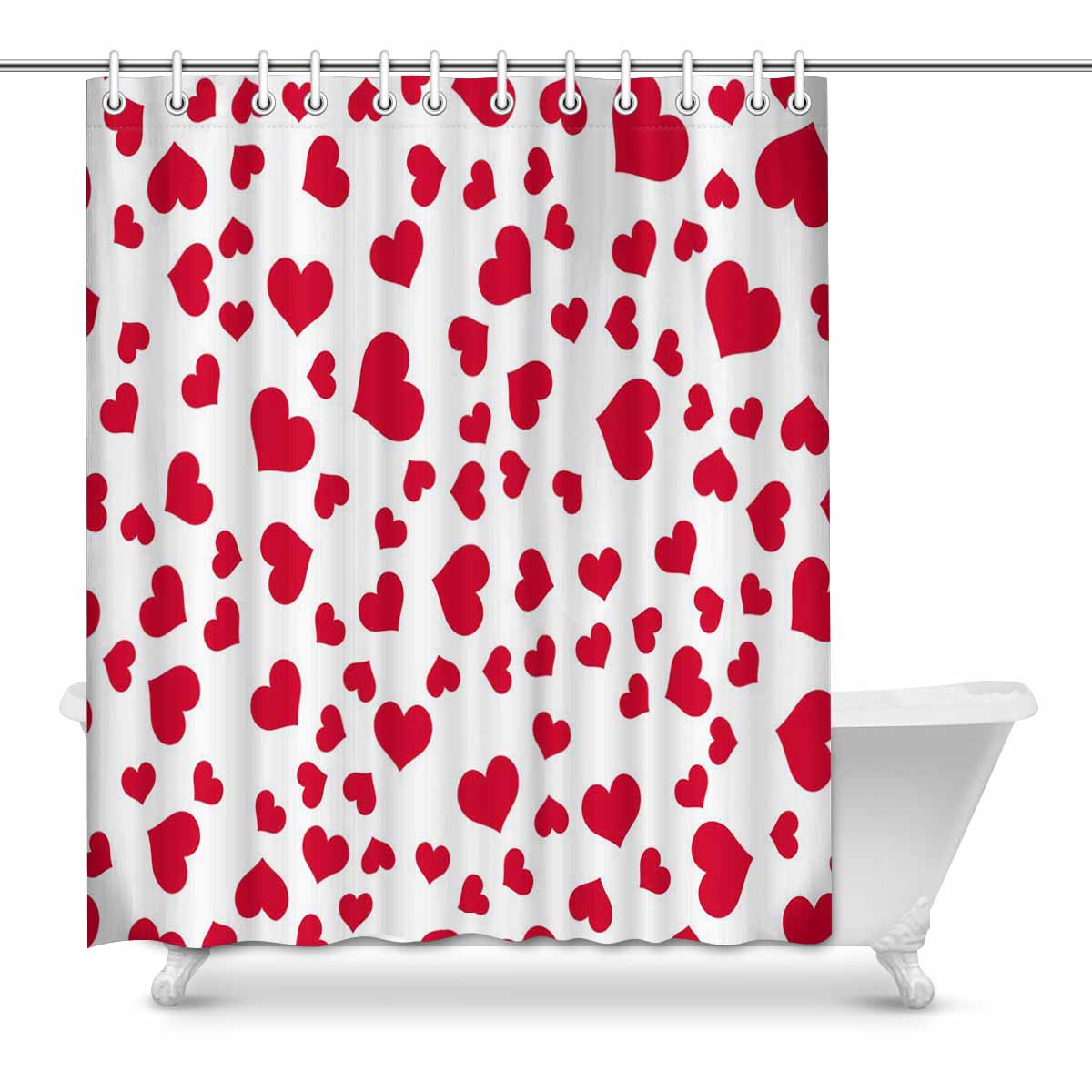 Bathroom Shower Curtain 60in*70in with red hearts pattern