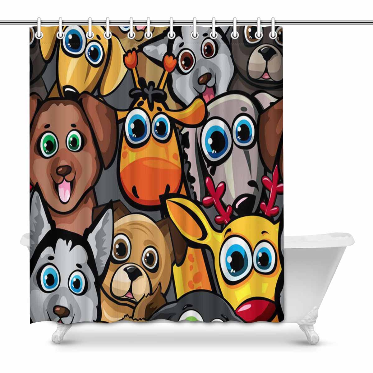 Bathroom Shower Curtain 60in x 72in with cute Animal dogs cat deer giraffe