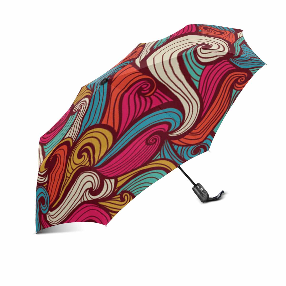 Colorful abstract waves pattern print Automatic Foldable Umbrella with totes