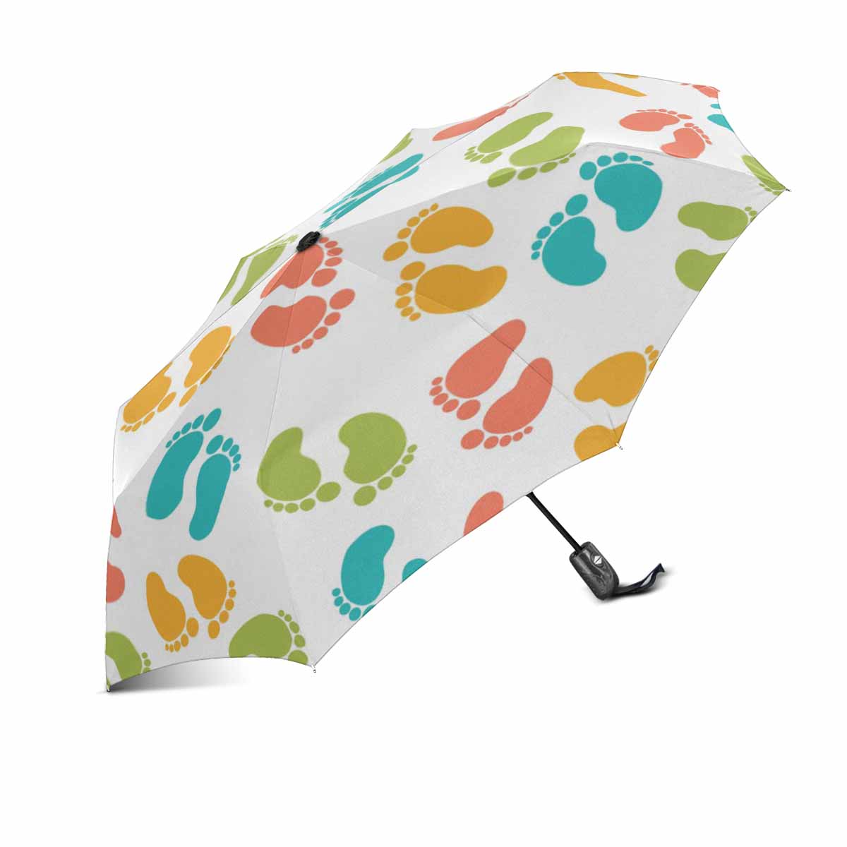 colorful pattern with baby footprint automatic umbrella foldable with totes