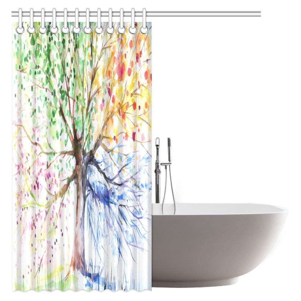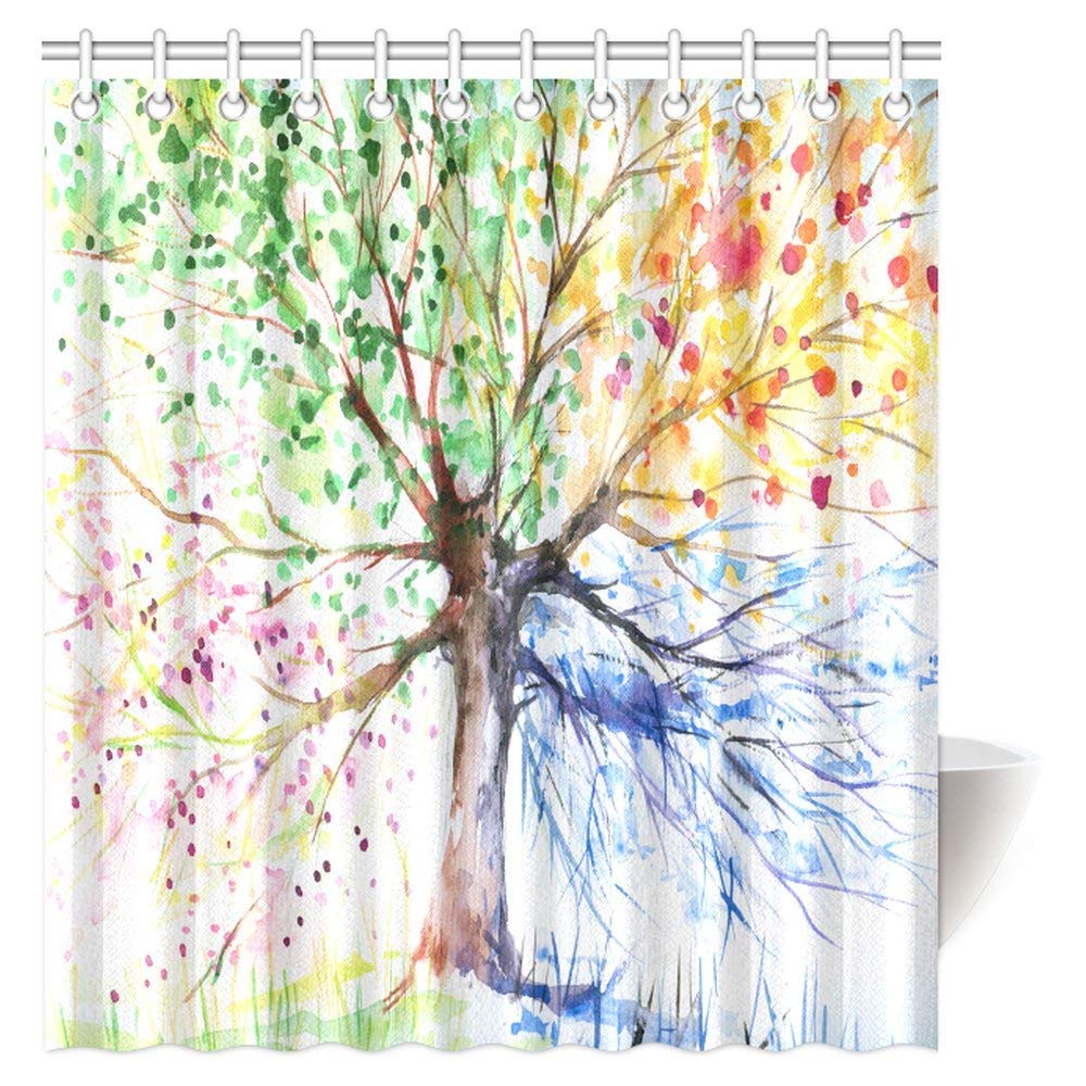 Colorful Tree Four Seasons Polyester Fabric Mildew Resistant Machine Washable Shower Curtain