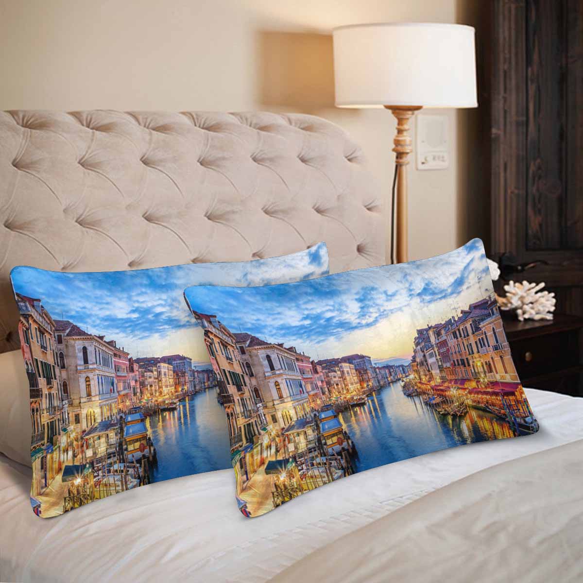 Coutry themed Rectangle Pillow Cases printed Panoramic view of famous Grand Canal