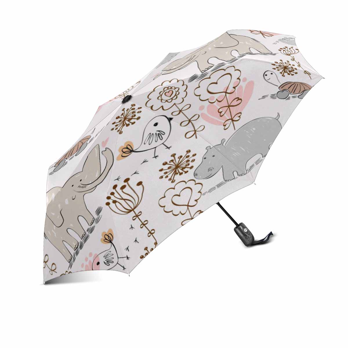 cute Elephant Hippopotamus pattern automatic umbrella foldable with totes