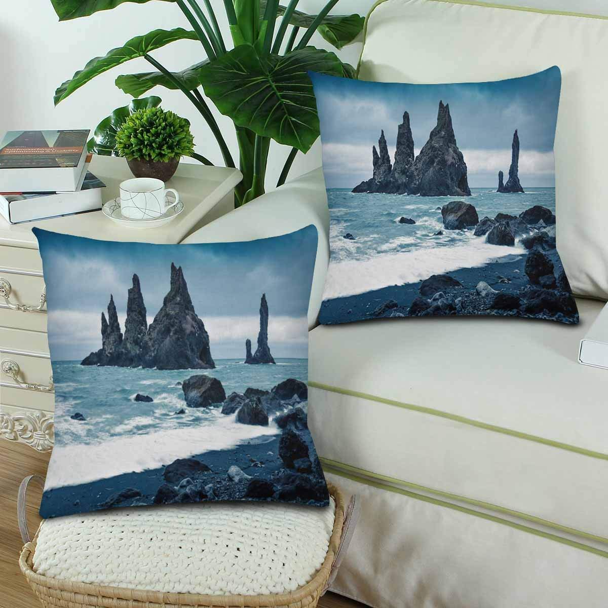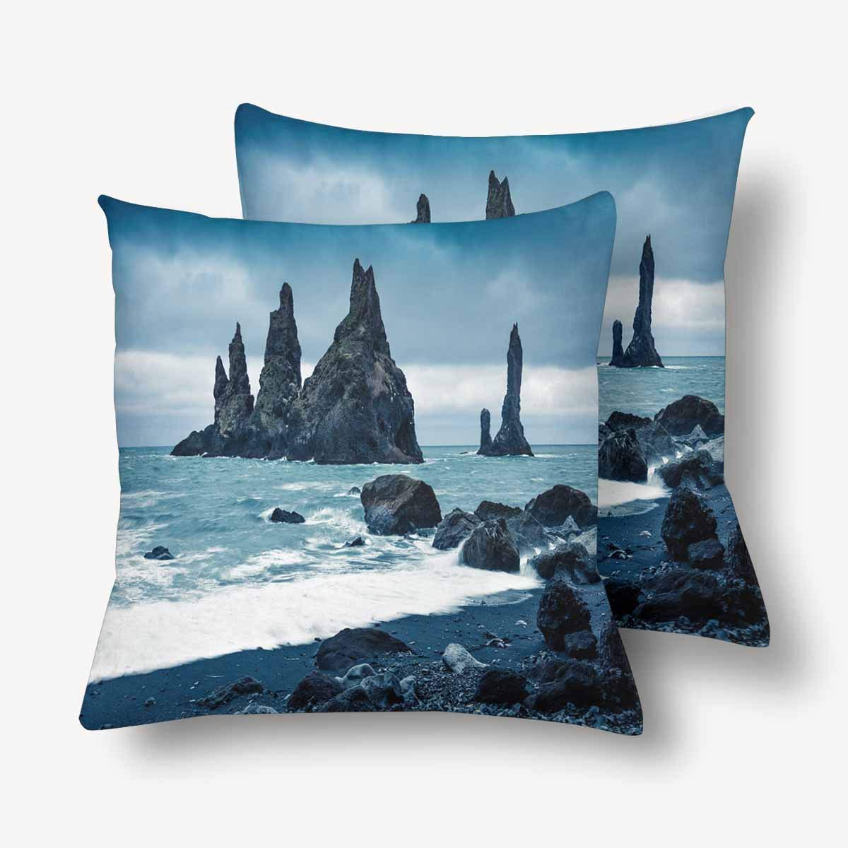 Dramatic Seascape Ocean Dark Summer Morning South Iceland Pillowcase Throw Pillow Covers 18x18 Set of 2, Pillow Sham Cases Protector for Home Couch Sofa Bedding Decorative