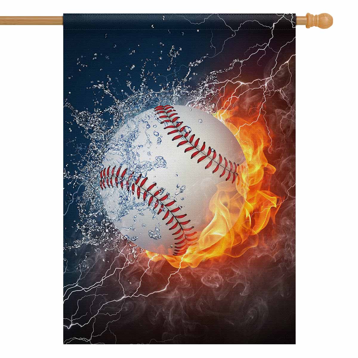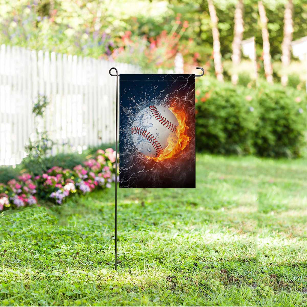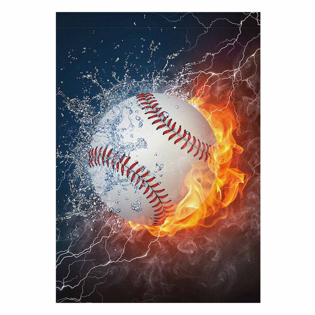 Garden Flags printed sports themed with Baseball Ball on Fire and Water