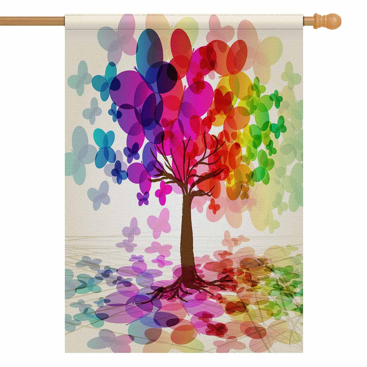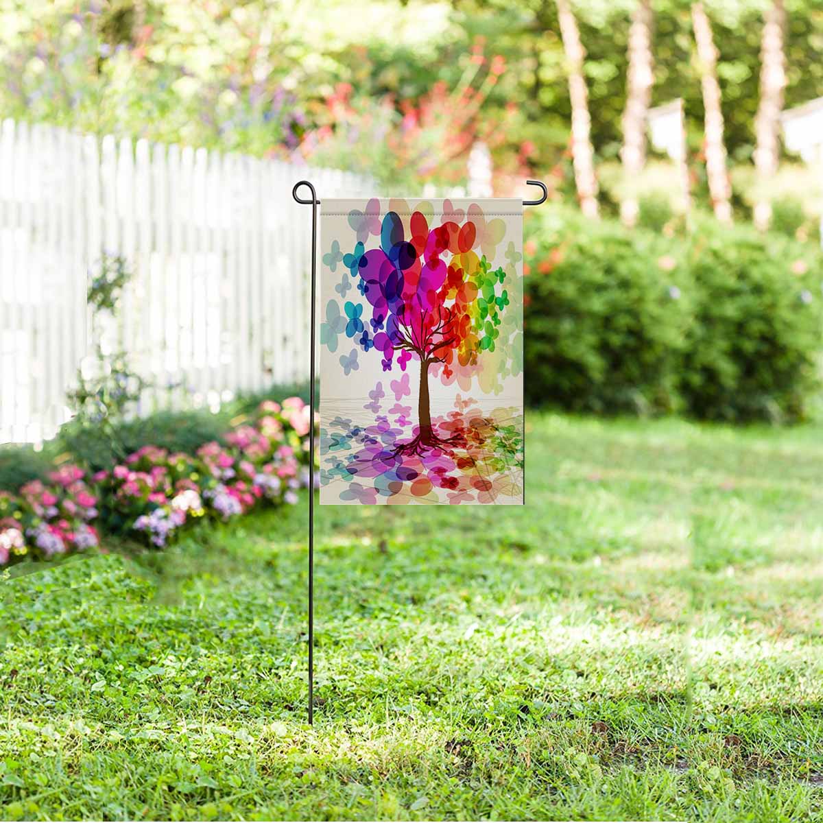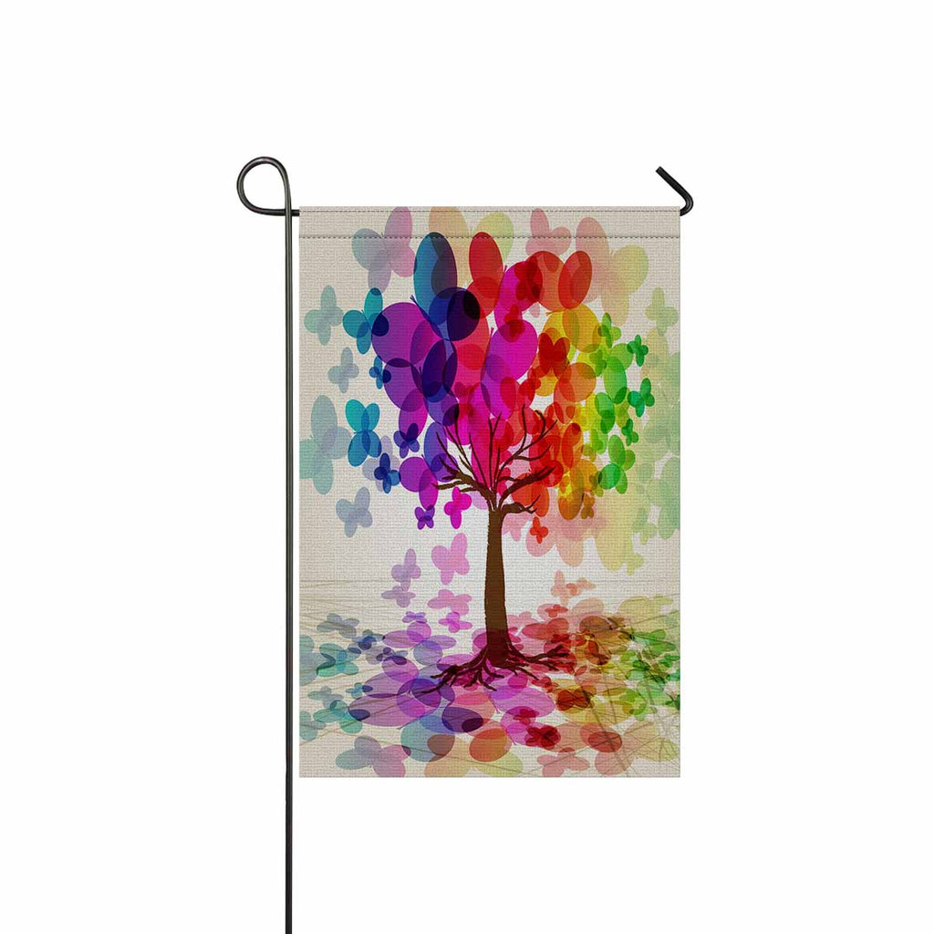 Garden Flags printed tree and moutains themed with Abstract colorful Tree