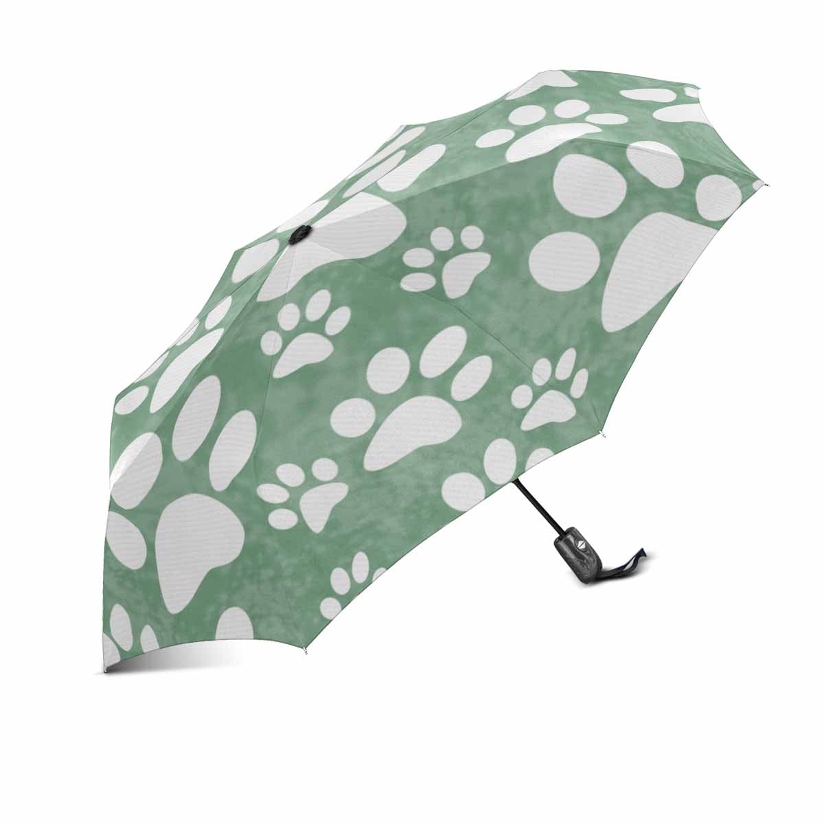 green white dog paw print pattern travel umbrella automatic windproof foldable