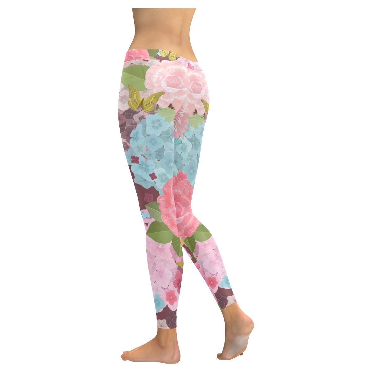 womens Graphic summer flowers print on Low Rise outdoor plus size Leggings XXS-5XL