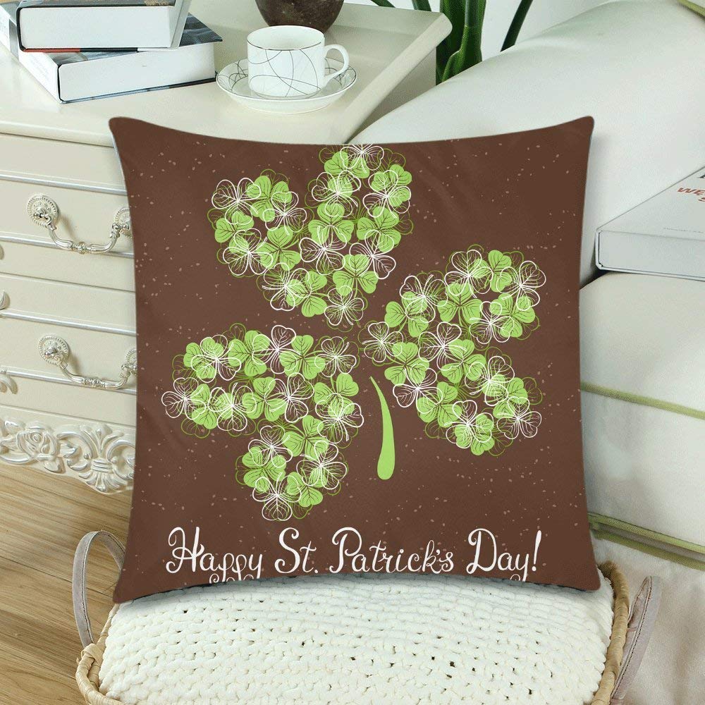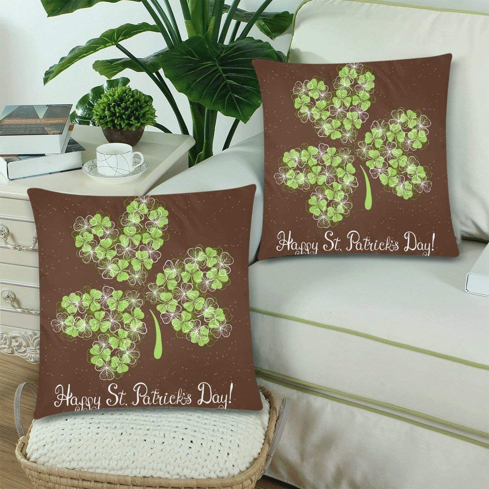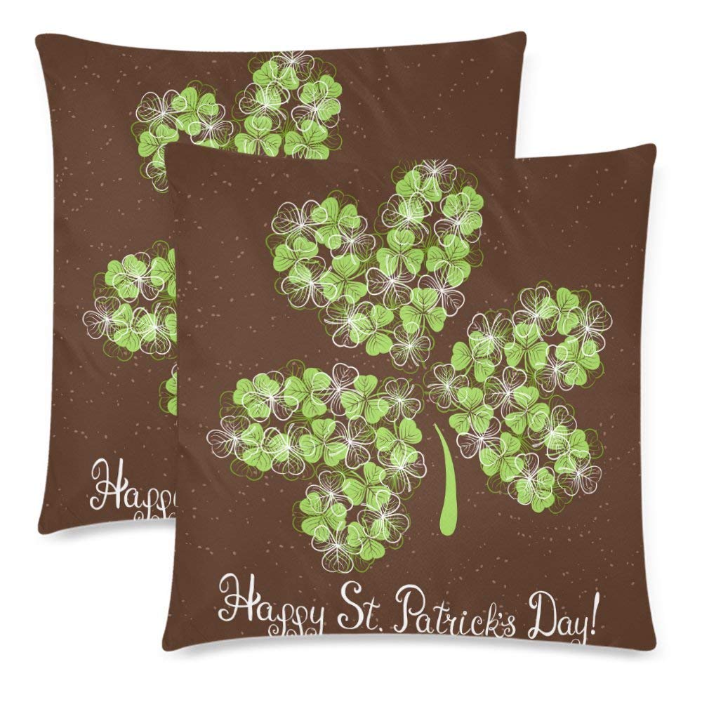 Patrick's day with Three Leaf Clover Throw Pillow Covers 18x18, Happy Saint Patrick's Day Cotton Zippered Cushion Case Pillowcase Set Decorative, Set of 2
