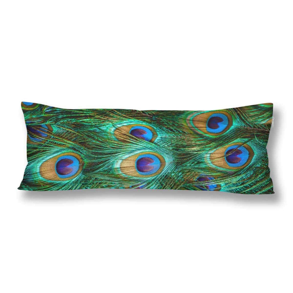Peacock Feather Body Pillow Covers Pillowcase with Zipper 21x60 Twin Sides, Tropical Animal Peafowl Green Rectangle Body Pillow Case Protector for Home Couch Sofa Bedding Decorative