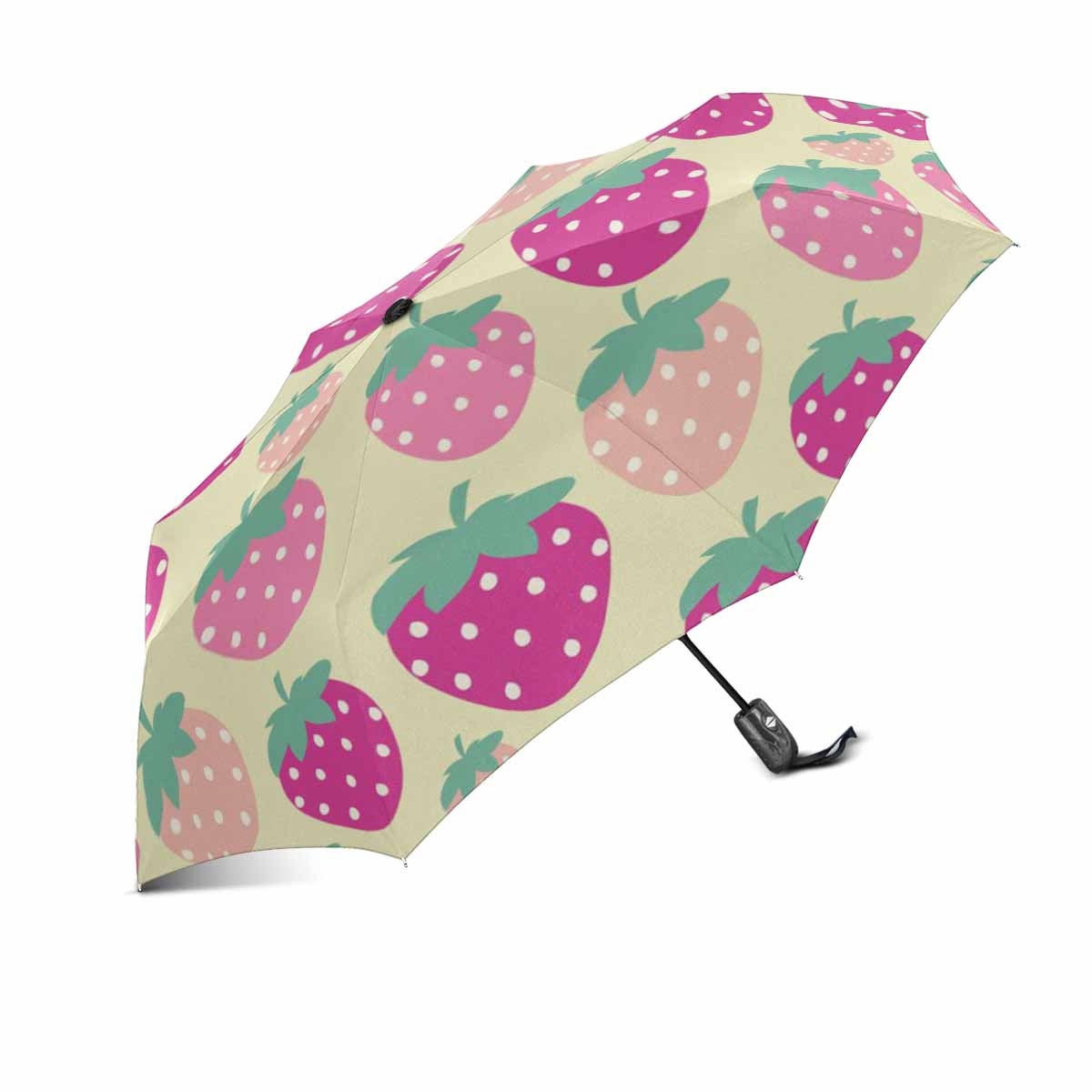 red Simple Strawberry pattern automatic umbrella foldable with totes